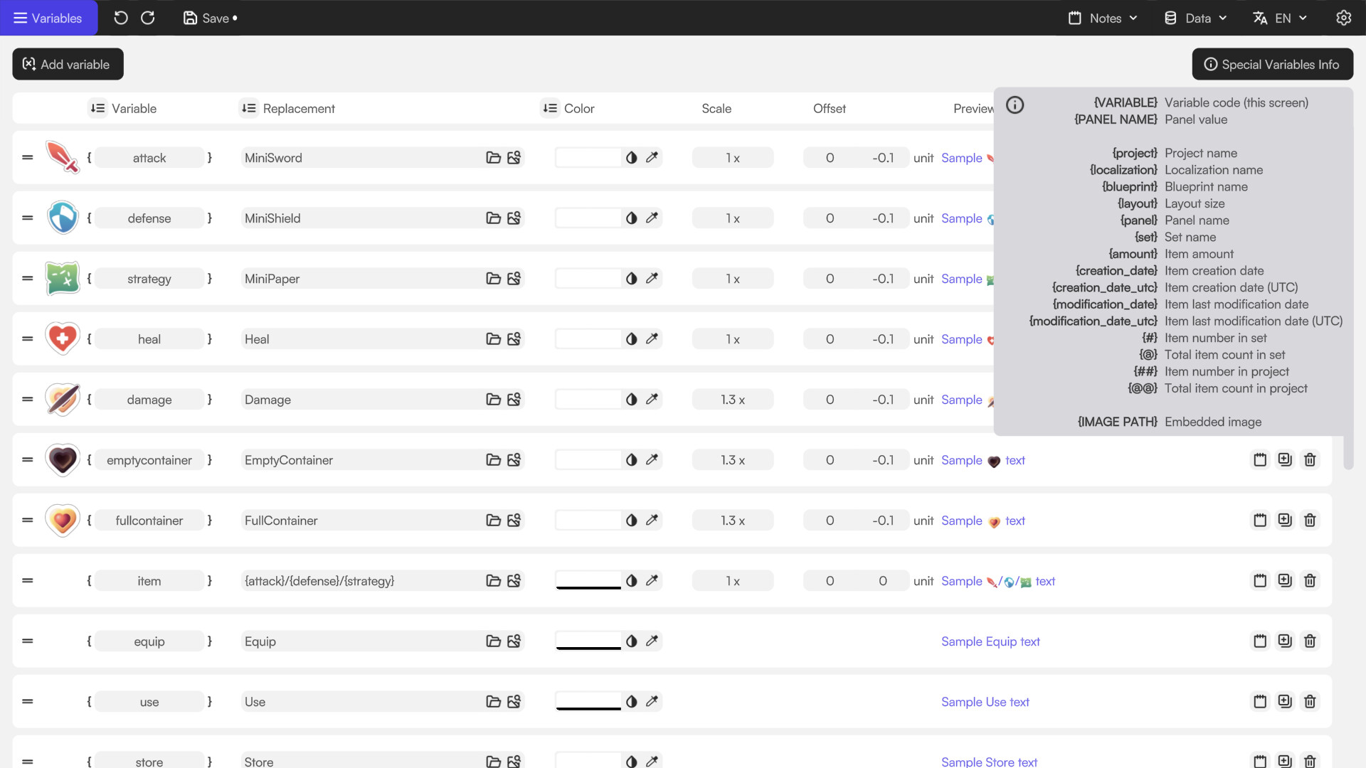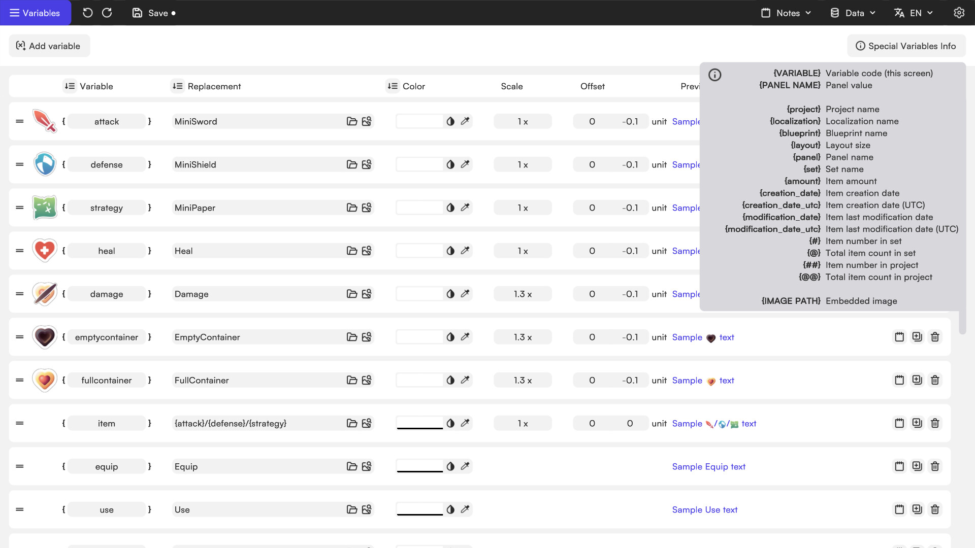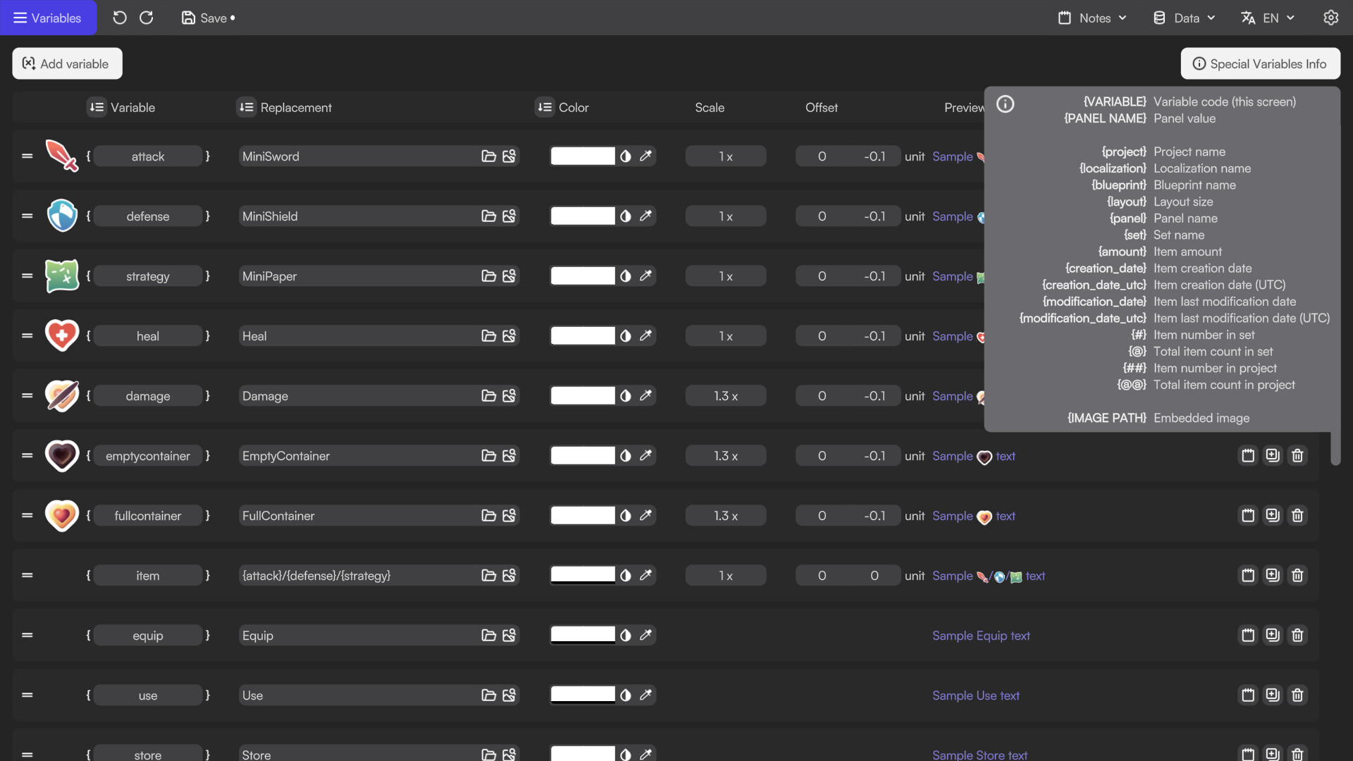 - Flexible Panels: Build your templates with panels of any shape and type: Images, text, QR codes, rounded corners, icons, mirrored values...