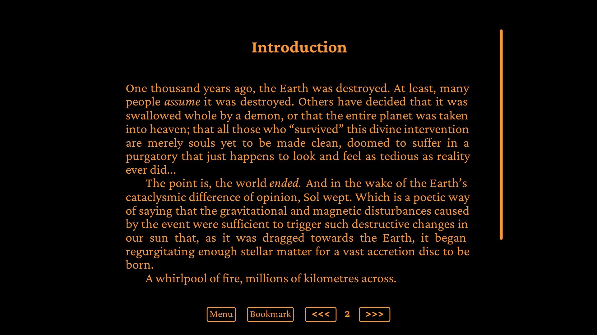 The world ended. The sun itself is dying. Yet among the glowing embers and against all odds, life persists. Welcome to the Eddawielm: An accretion disk formed of the flames of a shattered Solar System, strewn with the tumbling fragments of dead planets, and littered with the defiant remnants of mankind; a new world... with all the old problems.