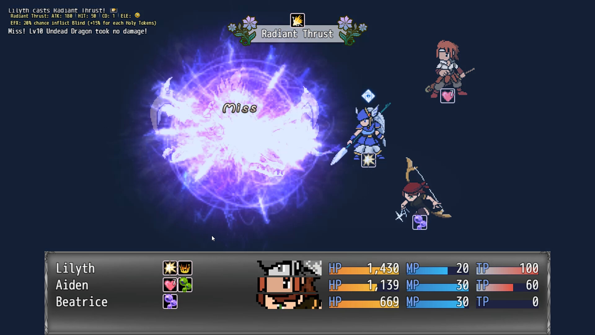 First three dungeons. 3 recruitable characters, each with a unique backstory and abilities. Encounter a variety of enemies, from common foes to challenging bosses.