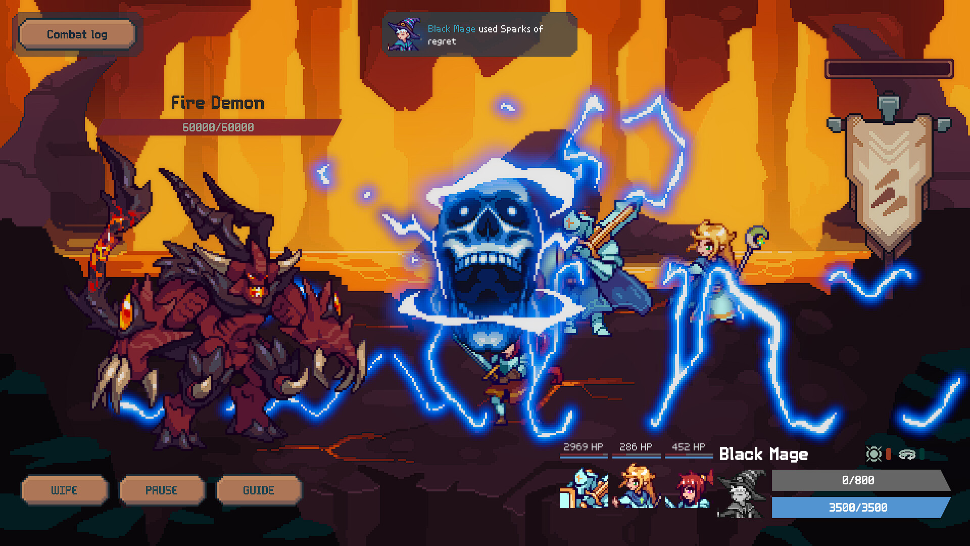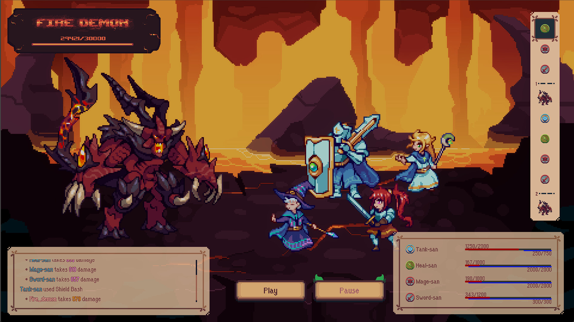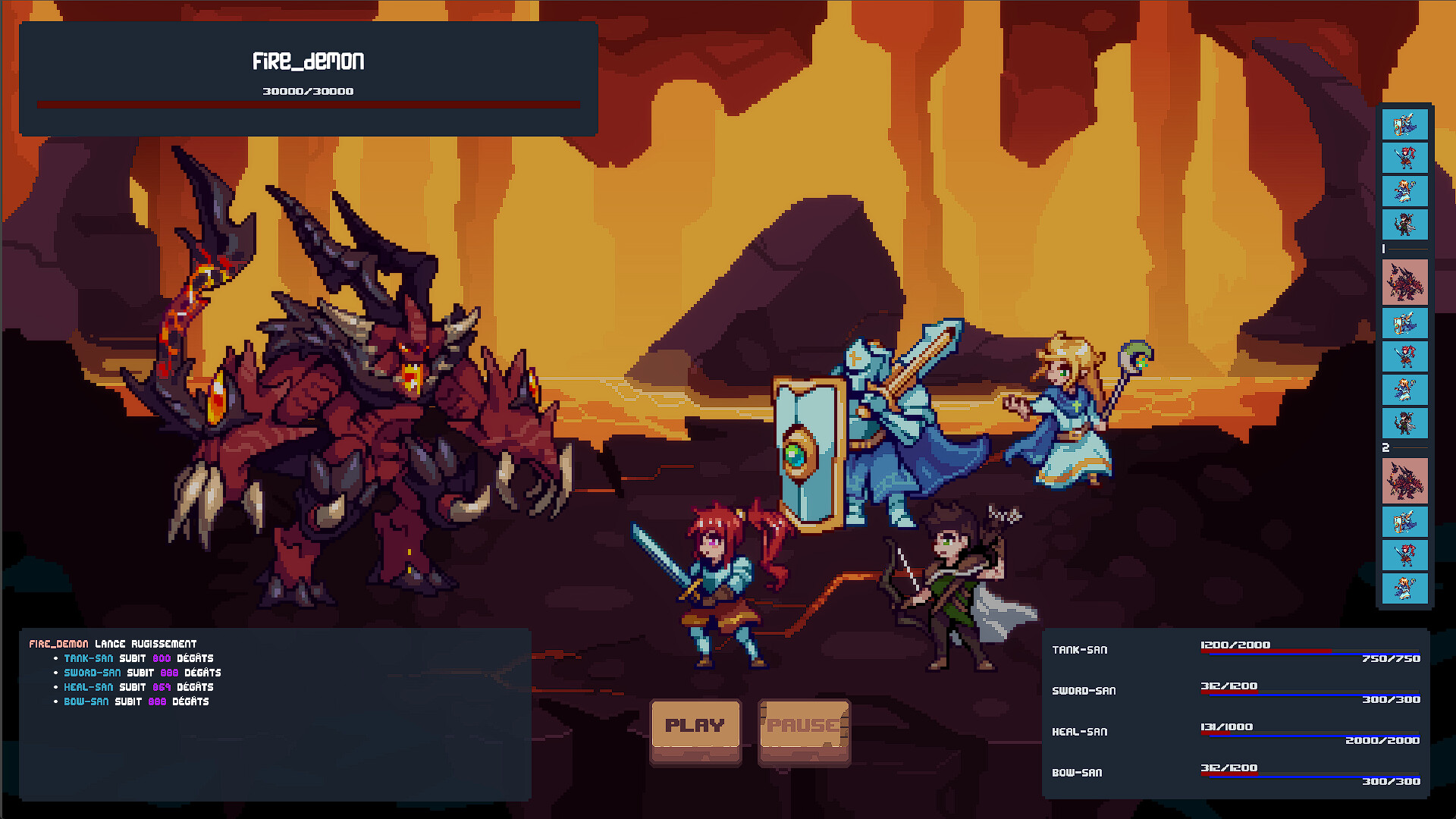 Epic fights with flashy spells, epic attacks, inspired from old JRPGs mixed with modern aethetics. Enjoy an automated turn-by-turn combat system with everything you need to monitor the fight, your party and help them succeed!