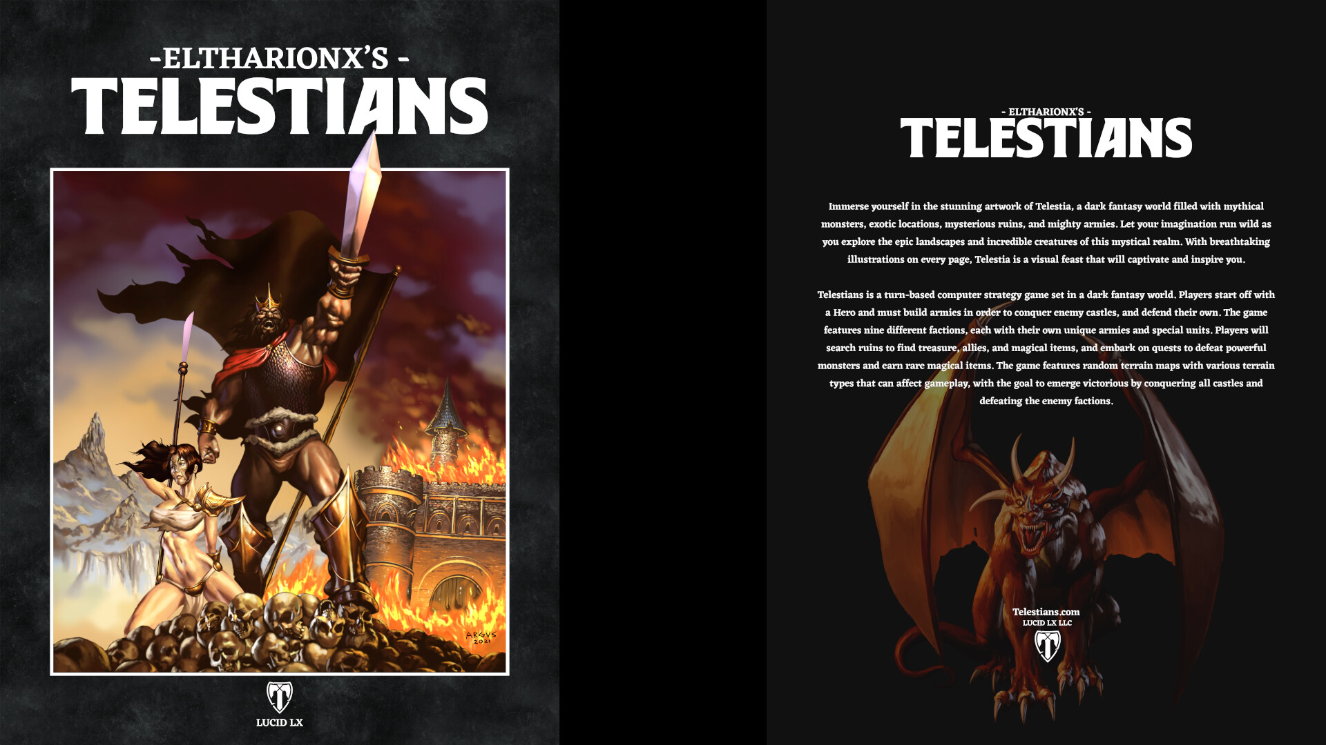 Explore 200+ uncensored artworks of the fantasy world of Telestia. View all the Heroes of the Barbarians, Chaos Horde, Dwarves, Elves, Gadiantons, Knights, Orcs, Reptilians and Undead. Enjoy all Monsters, Merchants, Ruin & Temple locations, and Victory & Defeat screens. Spark your creativity!