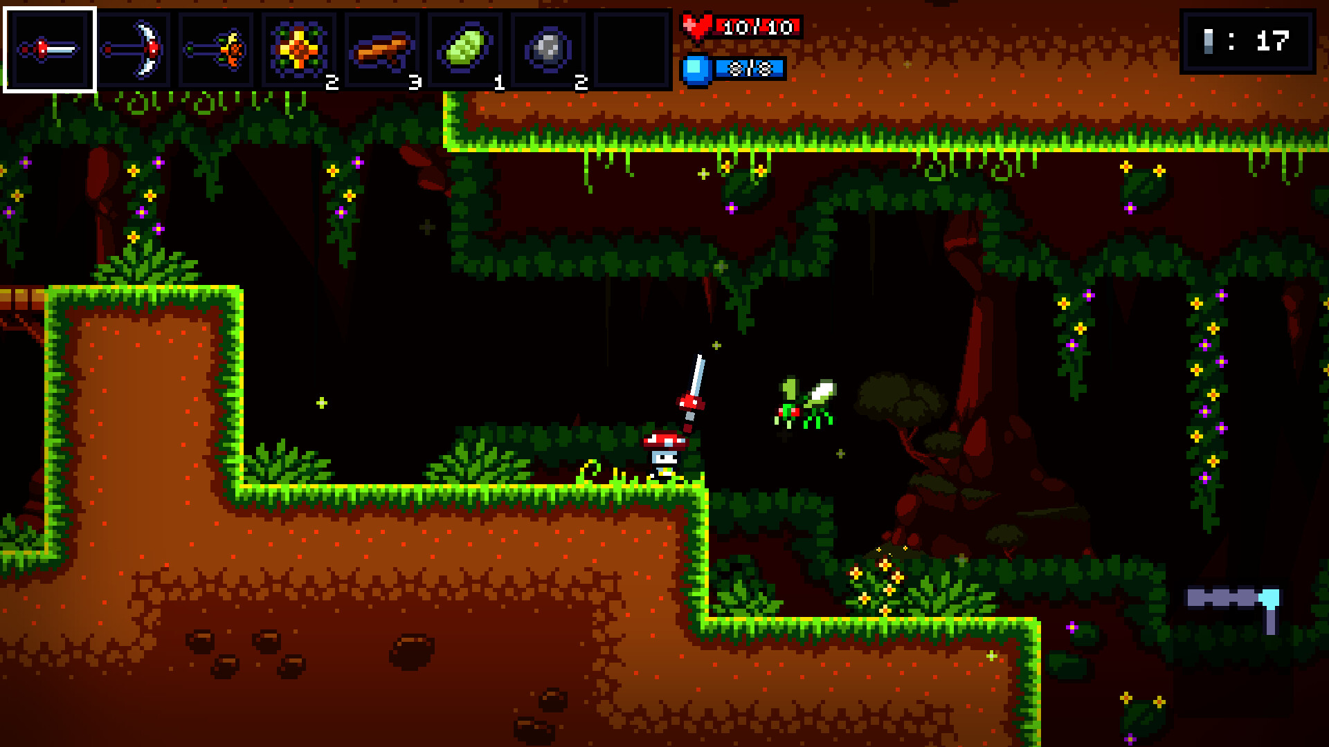 Grab your things and go on an adventure! Outside the Fungmo Kingdom is dangerous and wild! Explore, mine, fight different types of enemies and find new equipment. At the end of the adventure, return to your Home safely and create new weapons, armor and items so that you can explore even more advanced caves.