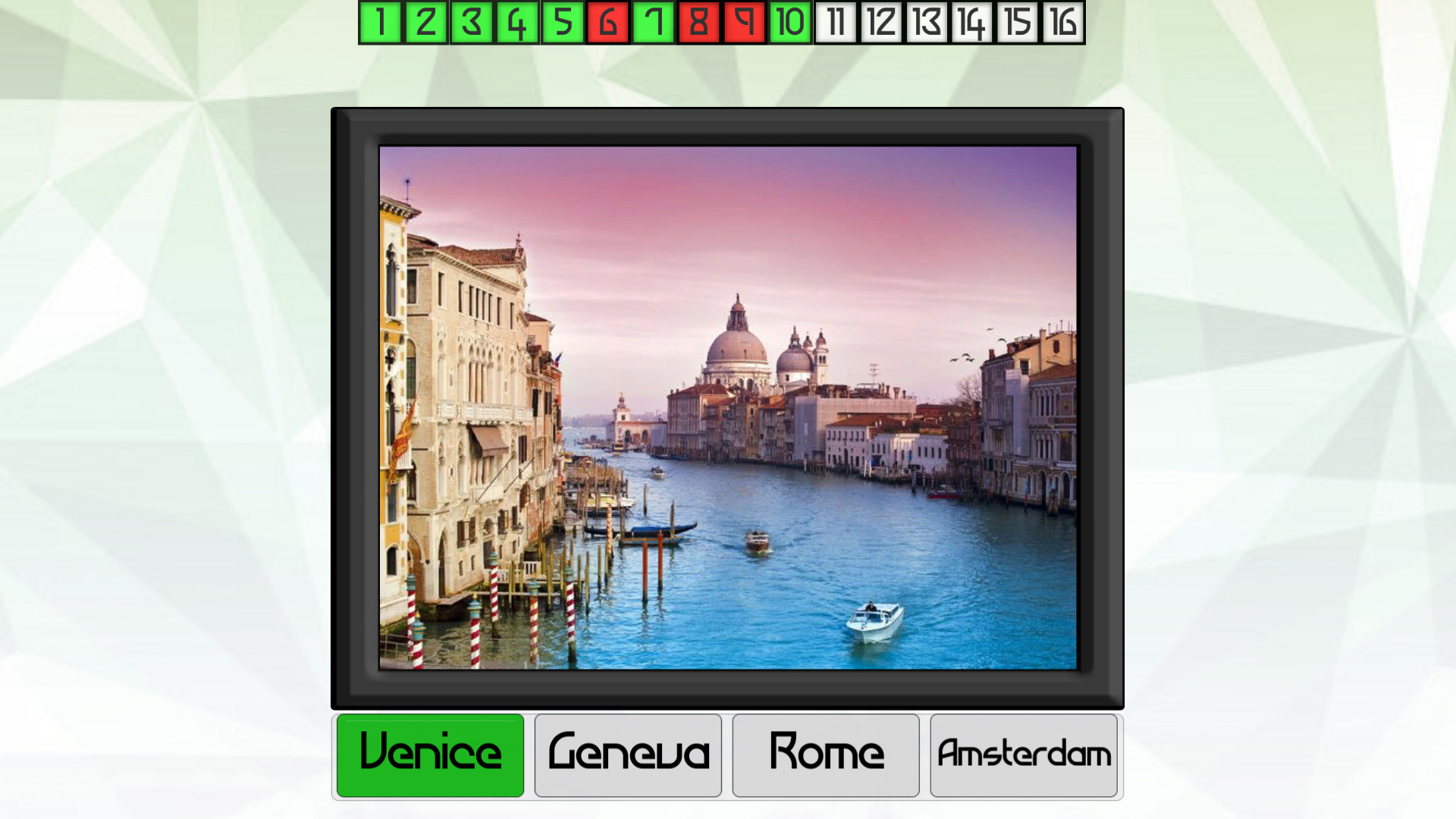 Test your knowledge: Cities is a test game that will test your knowledge of geography. Do you know what the most famous cities of the world look like? Moscow, Paris, Rome, Tokyo, Washington, Prague and many others. Test yourself with our interesting test. The essence of the game - is to choose one correct answer from four options! Answer all the questions correctly and get 16 beautiful achievements!