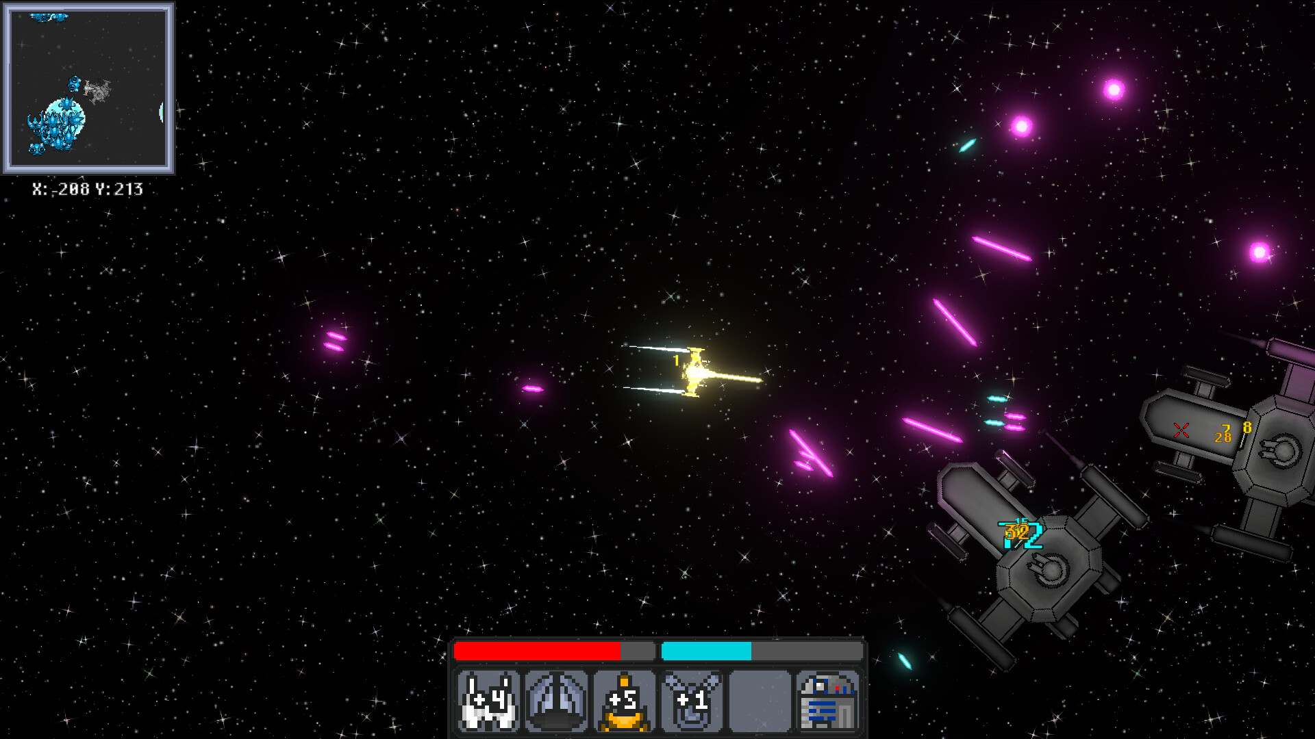 The Adventure Mode is where your conquering begins! Take your time and be free to explore a procedurally generated universe in search for asteroids, fight enemies along the way and upgrade your equipments, or just drift around with your spaceship. The main objective in this mode is to equip yourself and kill Kryon, the leader of the Kryo Nation.