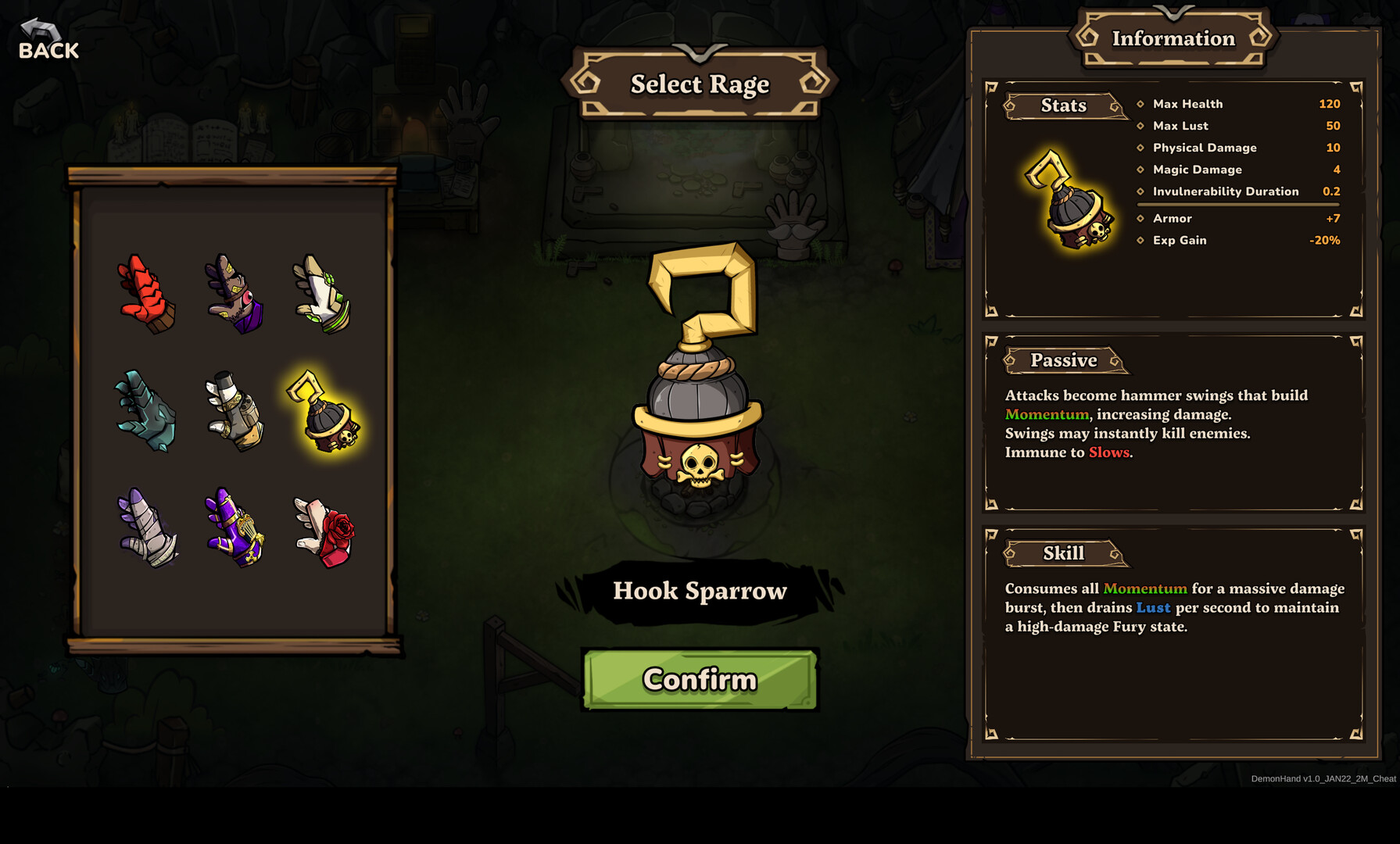 The game features a robust 7 primary stats system that lets you build your hand’s power in many direction. From Strength to Luck, each stat plays a vital role in shaping how you handle different enemies and bosses.