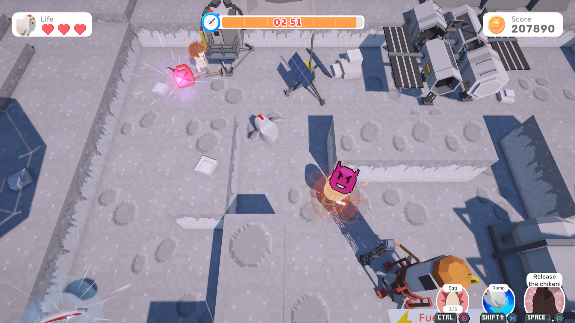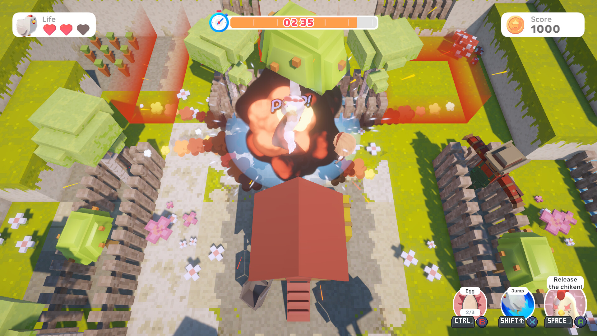 Release the Chicken: Release the power of the strange object into the chicken to turn the tables and allow it to chase the farmer and stun him if it hits him.