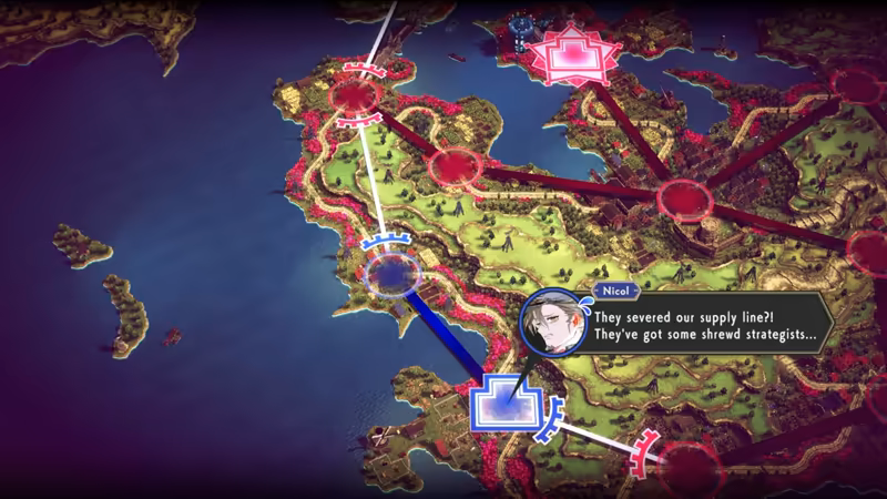 Units stationed at outposts connected to your headquarters via “lines” receive powerful support every turn. This applies to both allies and enemies.
