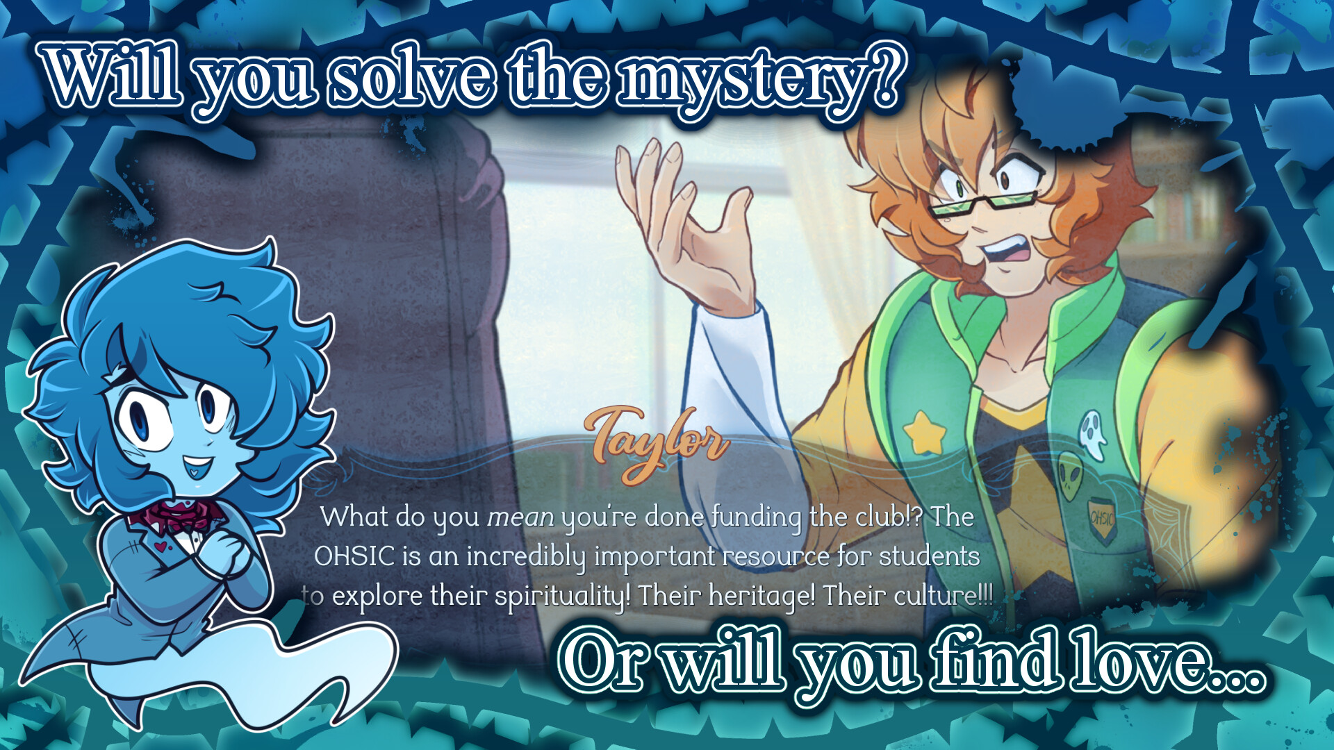 In a bid to stop the Occult History and Sciences Investigation Club (that's the OHSIC, and don't you forget it!) from losing funding, President Taylor Potts and you, the Vice President, have got to find a way to attract new members somehow. And what better way to prove that the club still has value to the campus board than to prove that ghosts really do exist? Dressed in some exquisite wedding attire and armed with a rose and earpiece, you're marched right up to the old Gallagher Mansion, a site of some grisly murders circa early 1900s, to trick a dead man into thinking that you too were abandoned at the altar.