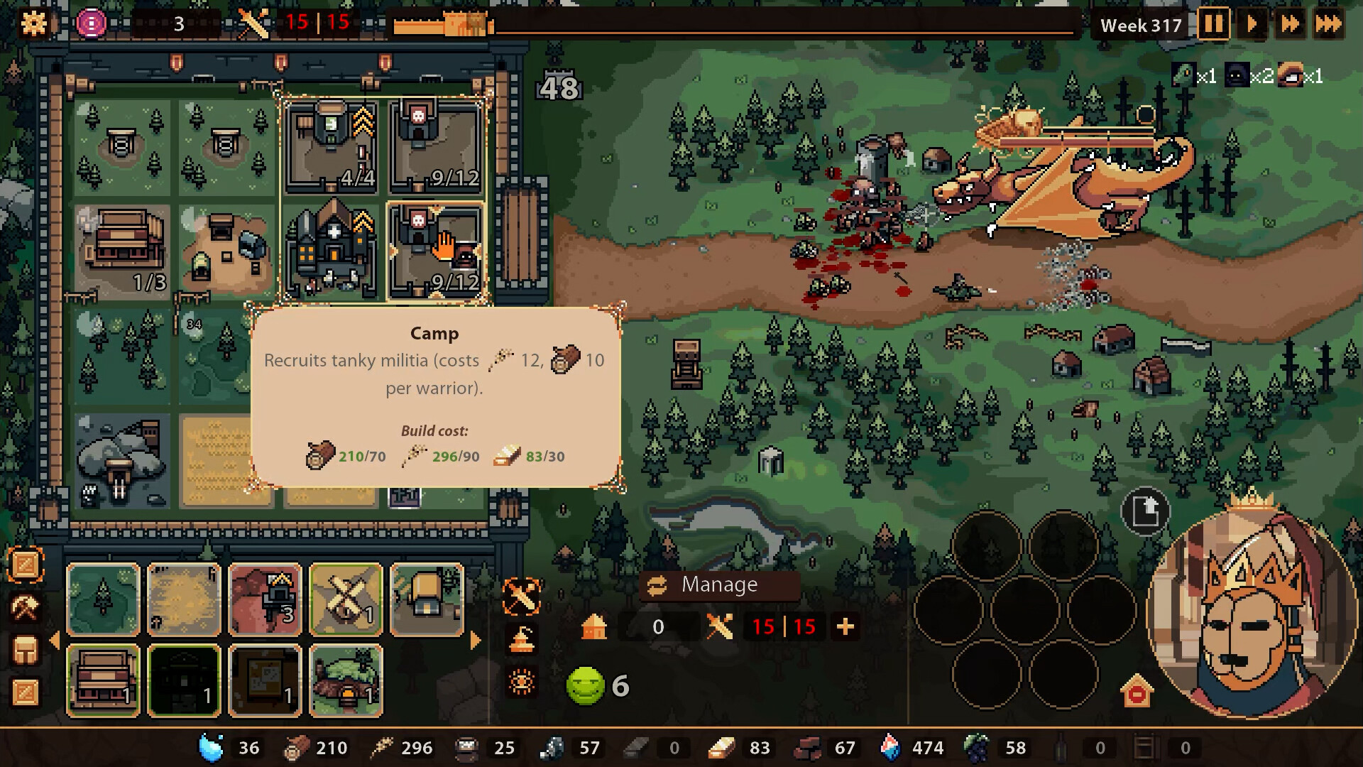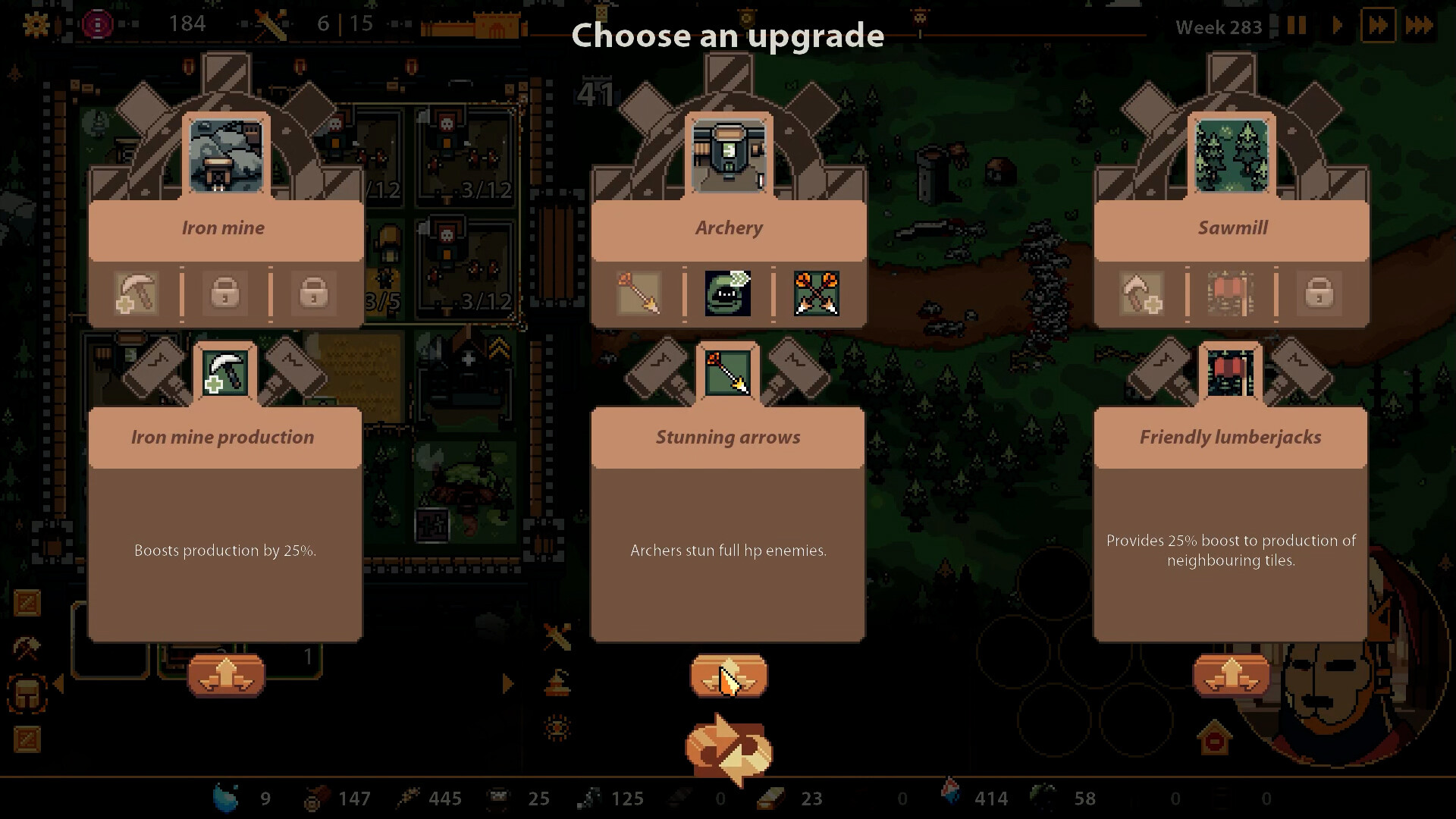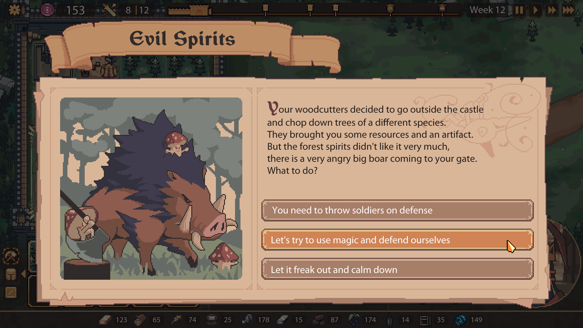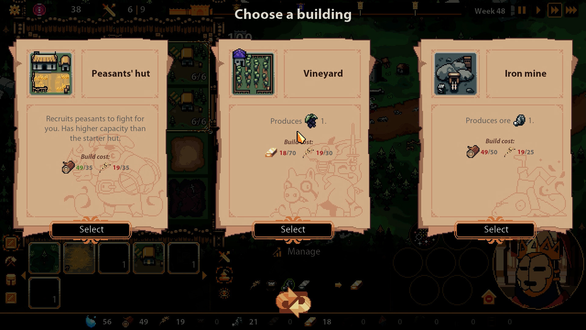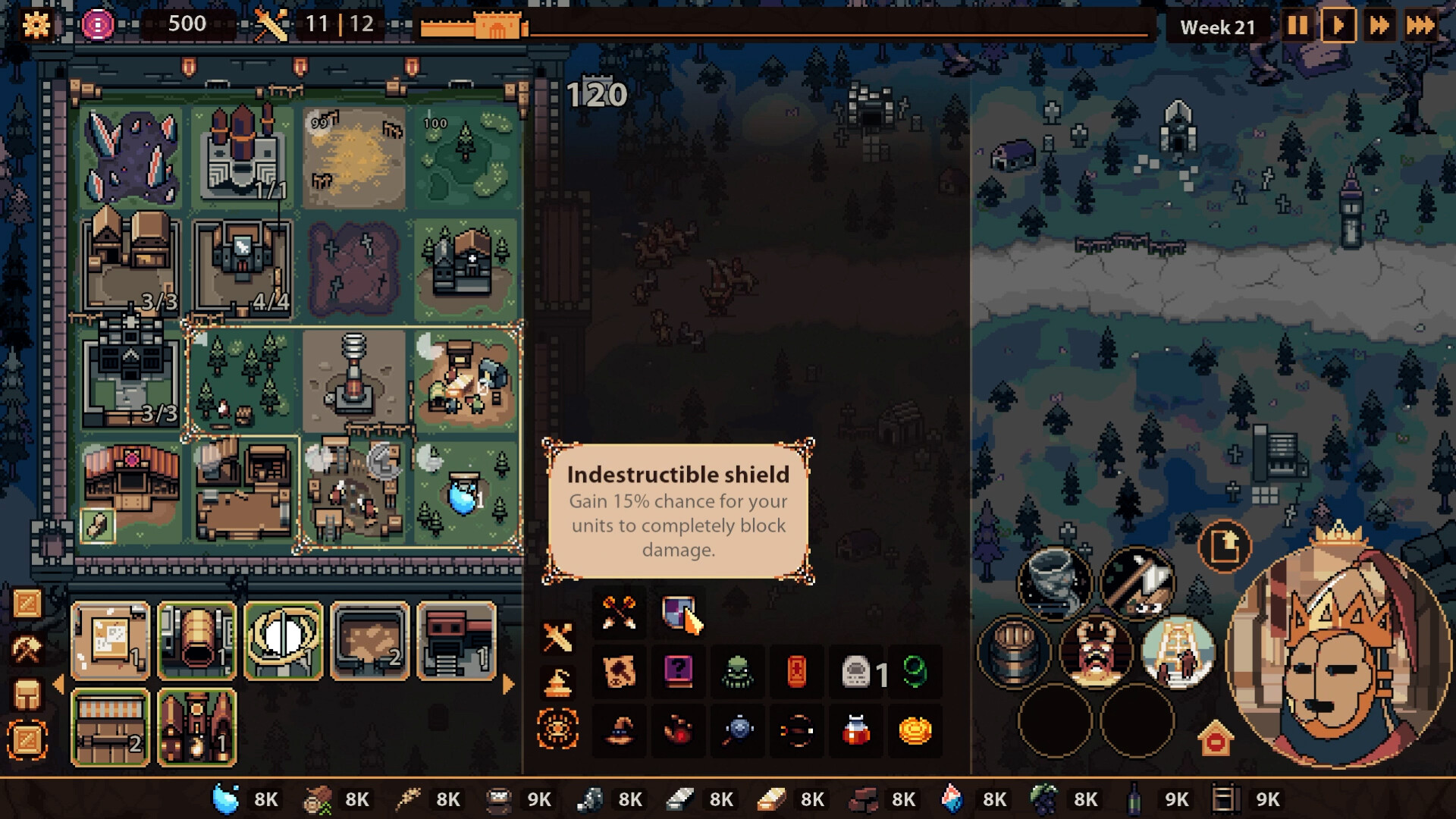 The King is Watching is a roguelite kingdom builder. Rule by the power of your royal gaze! Decide between producing resources, training armies, or balancing both, while adapting to unique events every run