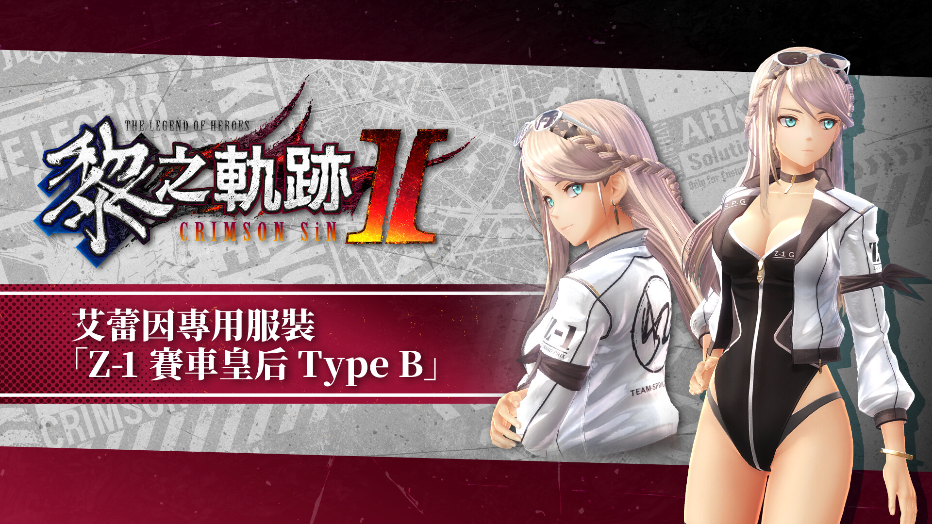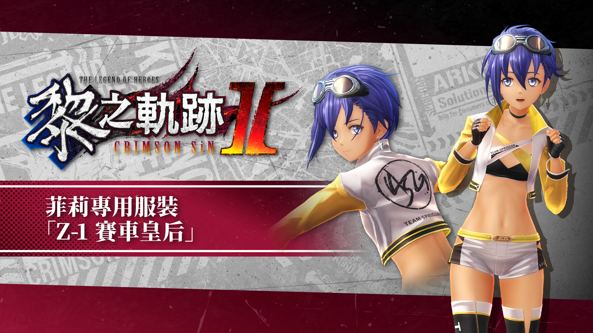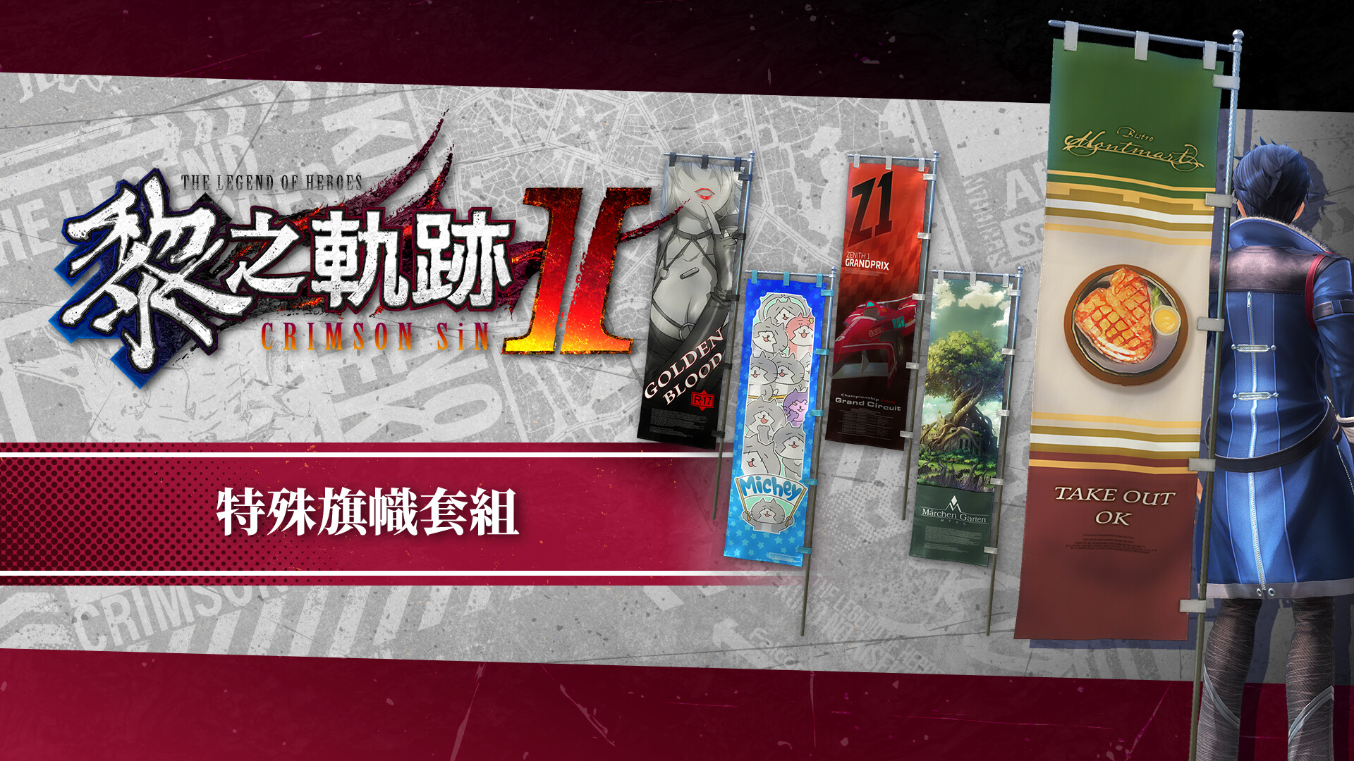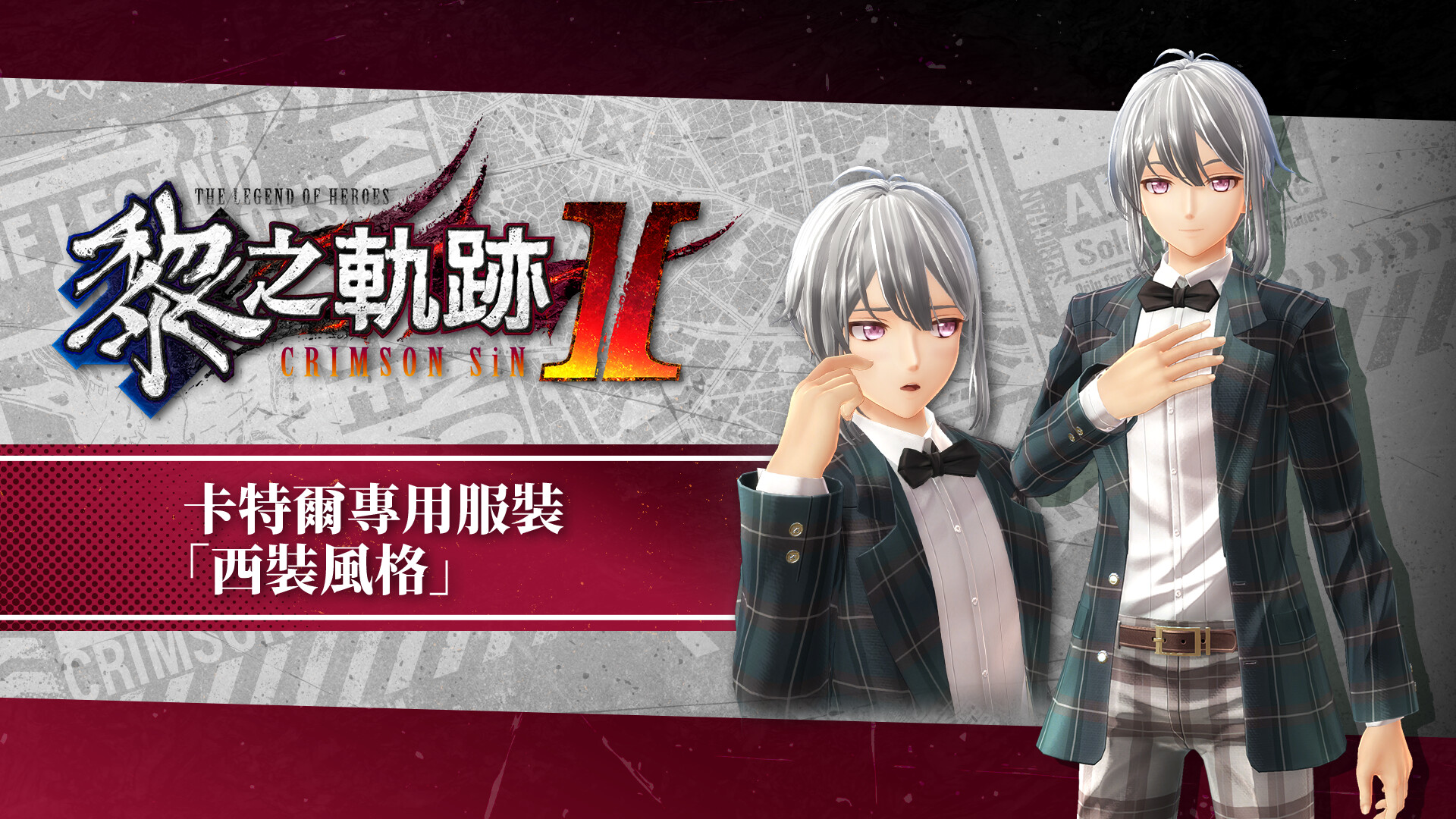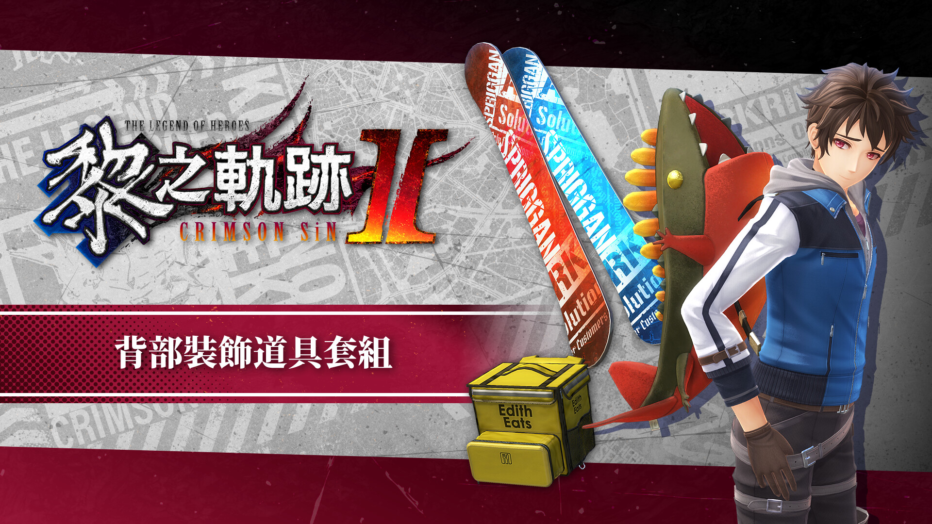 Set of The Legend of Heroes: Kuro no Kiseki II -CRIMSON SiN- DLC items, including costumes and attachment items.