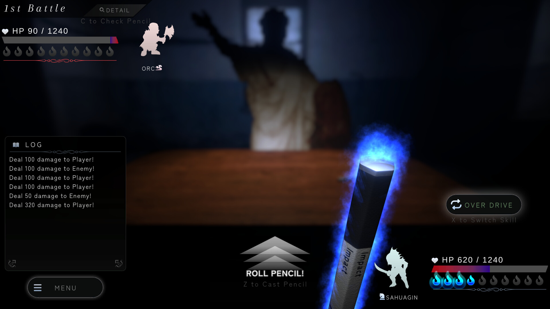 Roll the Pencil and when it stops, you attack the enemy according to the method displayed on the top surface of the Pencil. You take turns rolling the Pencil and the first player to take all of the opponent's HP wins.