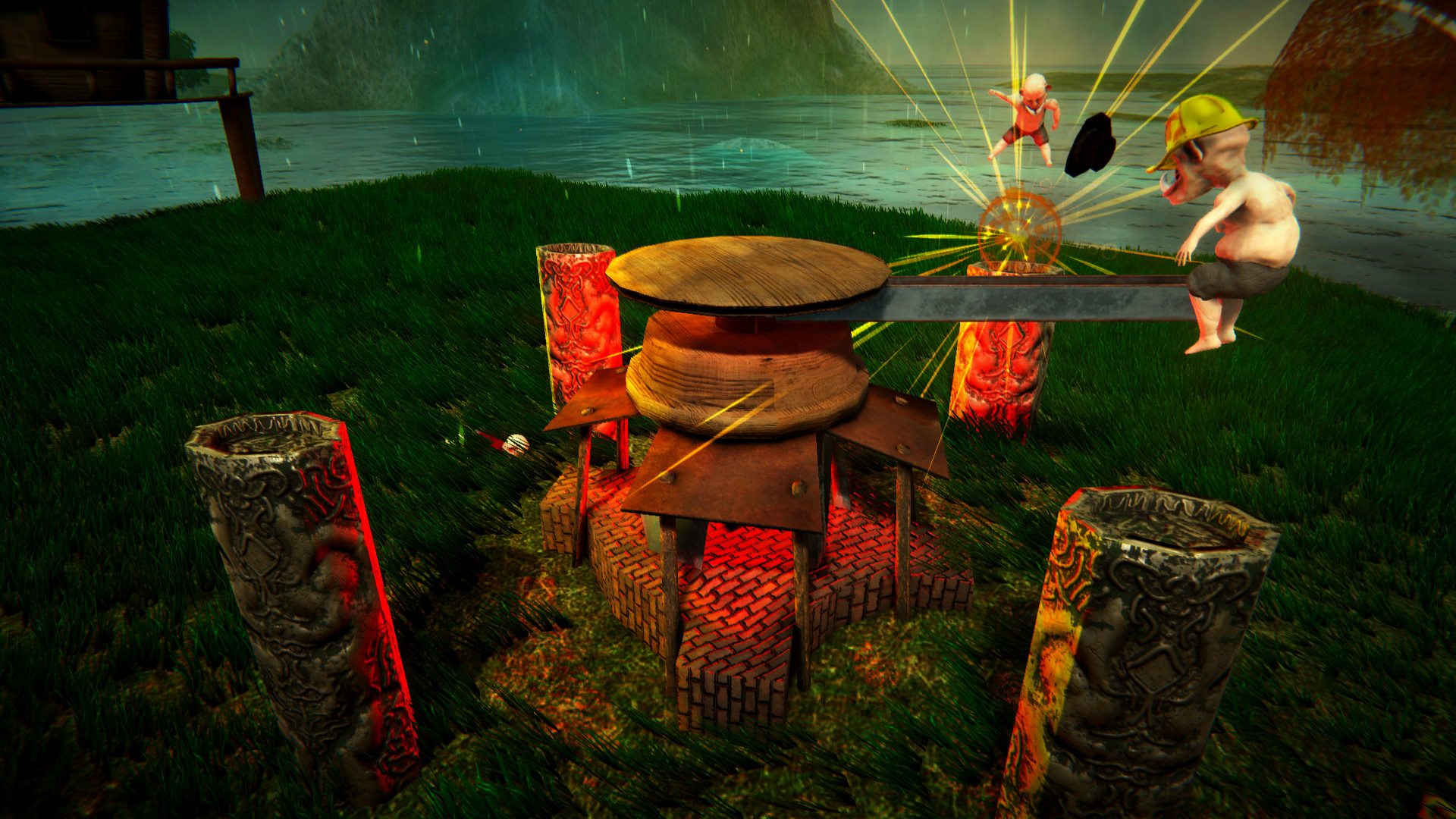 In the minigame Steel Beam, players must avoid getting hit by a steel beam turning faster and faster. Jump over or hit the steel beam, so you will not be hit with full force and break all your bones.