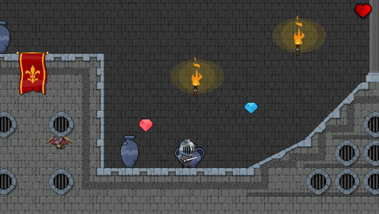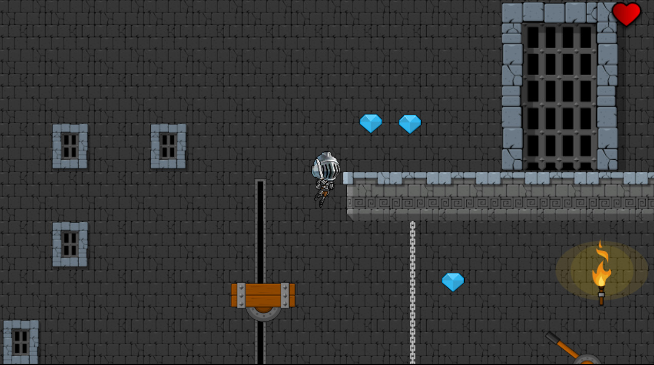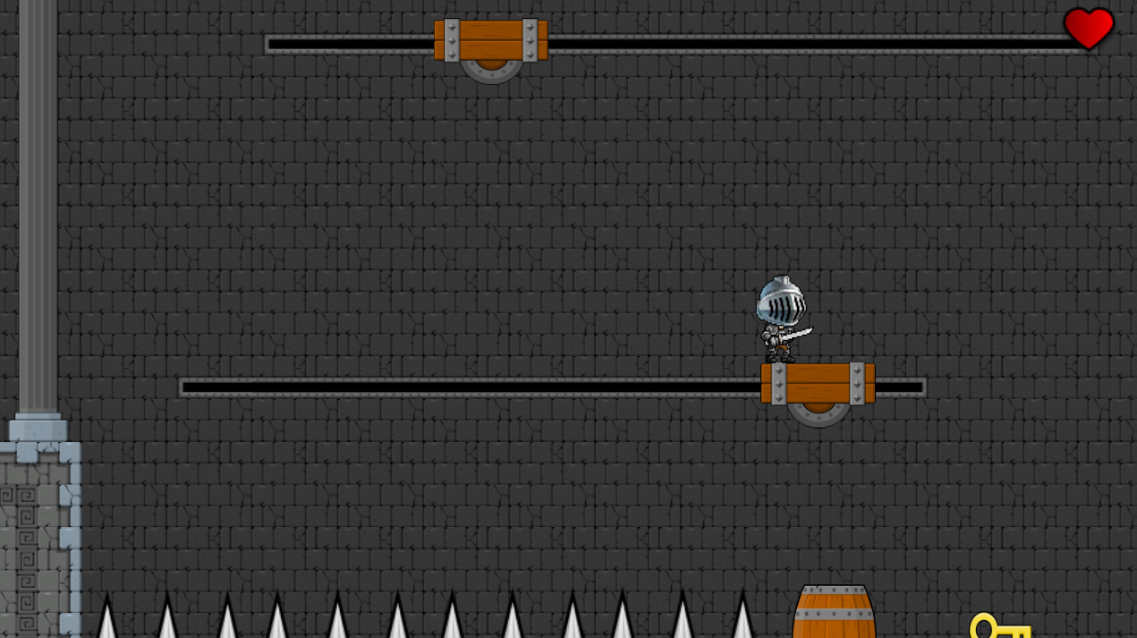 The path towards exit is not easy. Some levels are quite big. There will be spikes that obviously will kill you. Expect to find also moving blades that follow a predefined pattern. Also the castles you explore are not inhabited by humans so bats will be there. For a strange reason the knight is afraid of bats. However you have a sword that you can use to kill them.