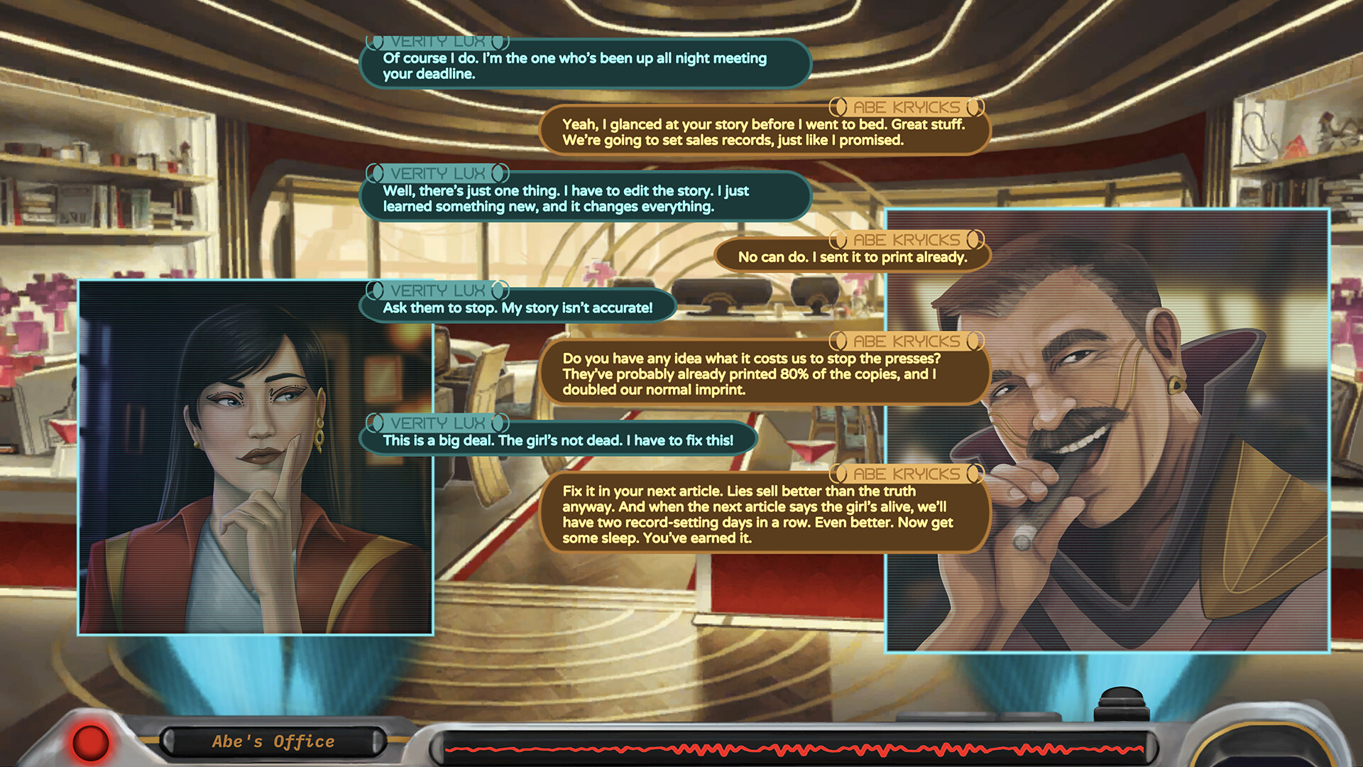 Immerse yourself in the life of Verity Lux, an acclaimed investigative journalist and one of Rosetta North's most highly esteemed members. With a knack for sleuthing and a gift for the written word, Verity is their best bet for solving the mysterious disappearance of celebrity Walker Kahmenos - a cocky and overconfident playboy who is usually quite good at making his presence known wherever he goes. In this gripping narrative, your choices and deductive prowess shape the outcome, and immerse you in a world of intrigue, suspense, and moral dilemma. Will you uncover the secrets beneath the surface or will you succumb to the darkness that grips your home city? The truth awaits your discovery in this new original series from the creators of the rich and chaotic world of G Prime, Soma Games. Take the reigns and crack the case in this interactive fiction series like no other!