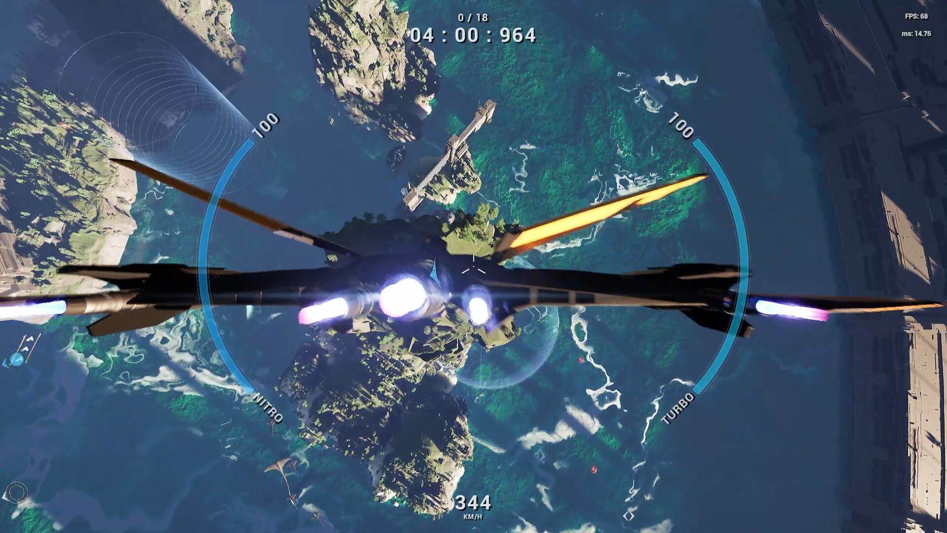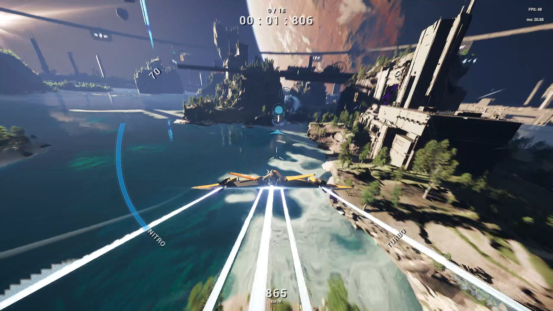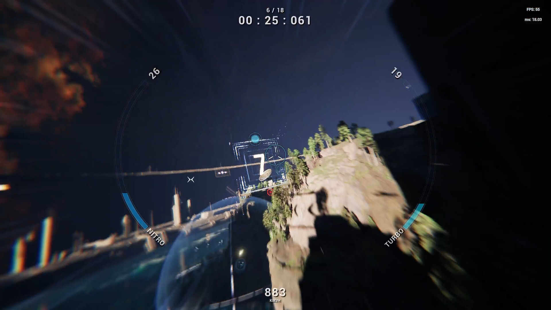 Race through colossal arenas in full 6DOF with insane speeds, shoot mechanics, and gravity-defying stunts.