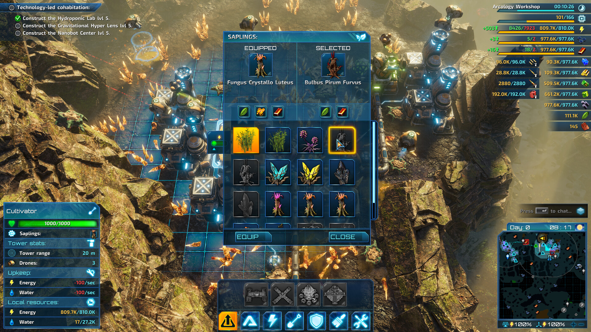 Galatea 37 is an unknown planet in the Sycorax belt of the Milky Way galaxy. Long distance surveys detected that it is inhabitable and perfect for colonization. The planet is full of rare minerals and substances that can be found in various locations around the globe. Varied biomes can surprise you with unknown fauna and flora as well as harsh weather conditions. Construct local outposts in resource-rich locations that will transport the required resources using rift technology.