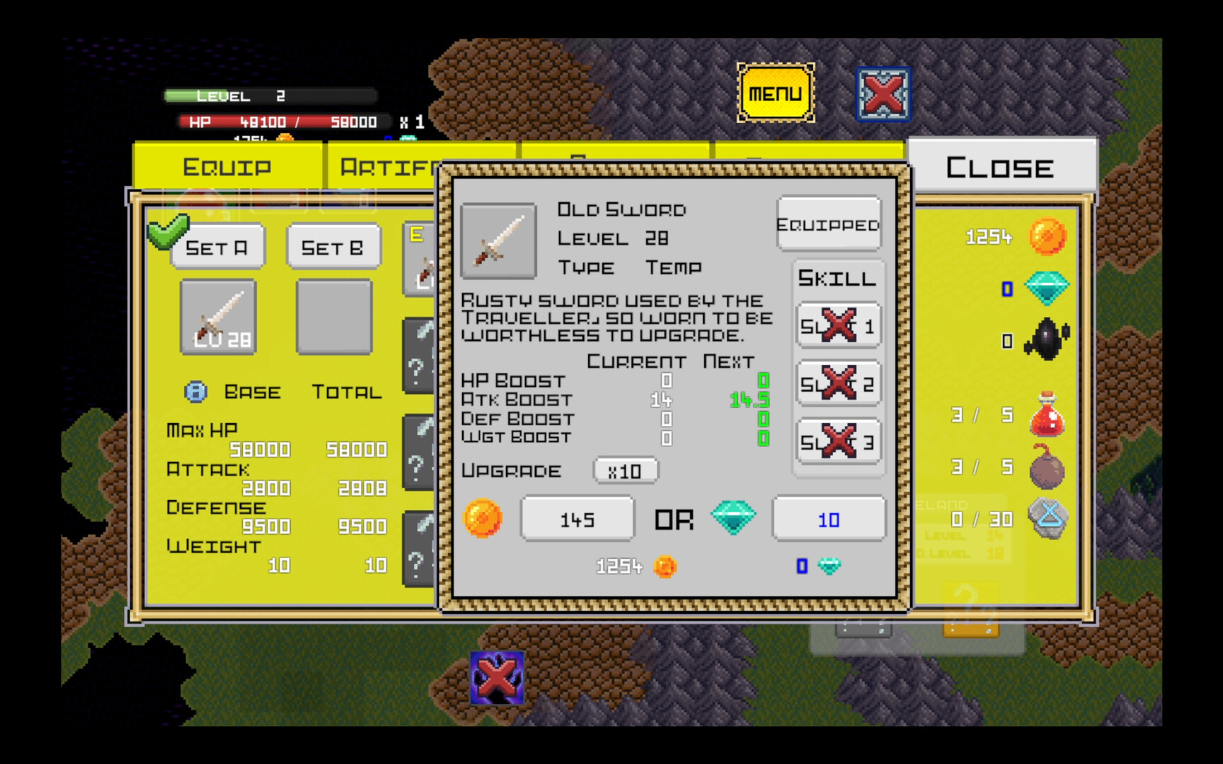 In The Rogue of Nexus, time is the most precious resource. Each dungeon is a frantic race against time, with the looming threat of the Hand constantly pushing you forward. Collect powerful artifacts to improve your skills. Each run is a new challenge, and each failure will give you the boost to get back up even stronger.