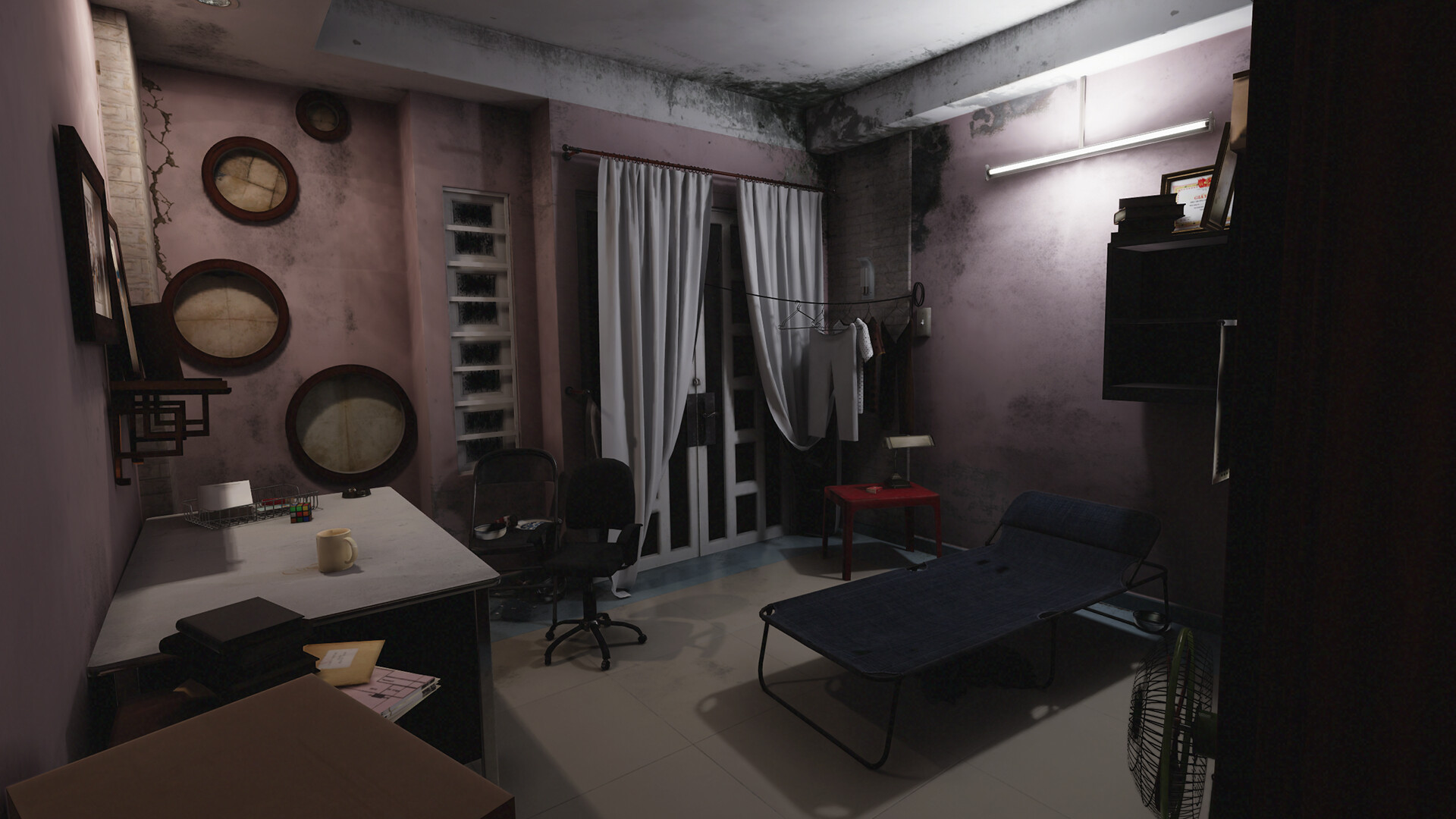 A taste of the game's atmospheric setting in a rundown apartment
