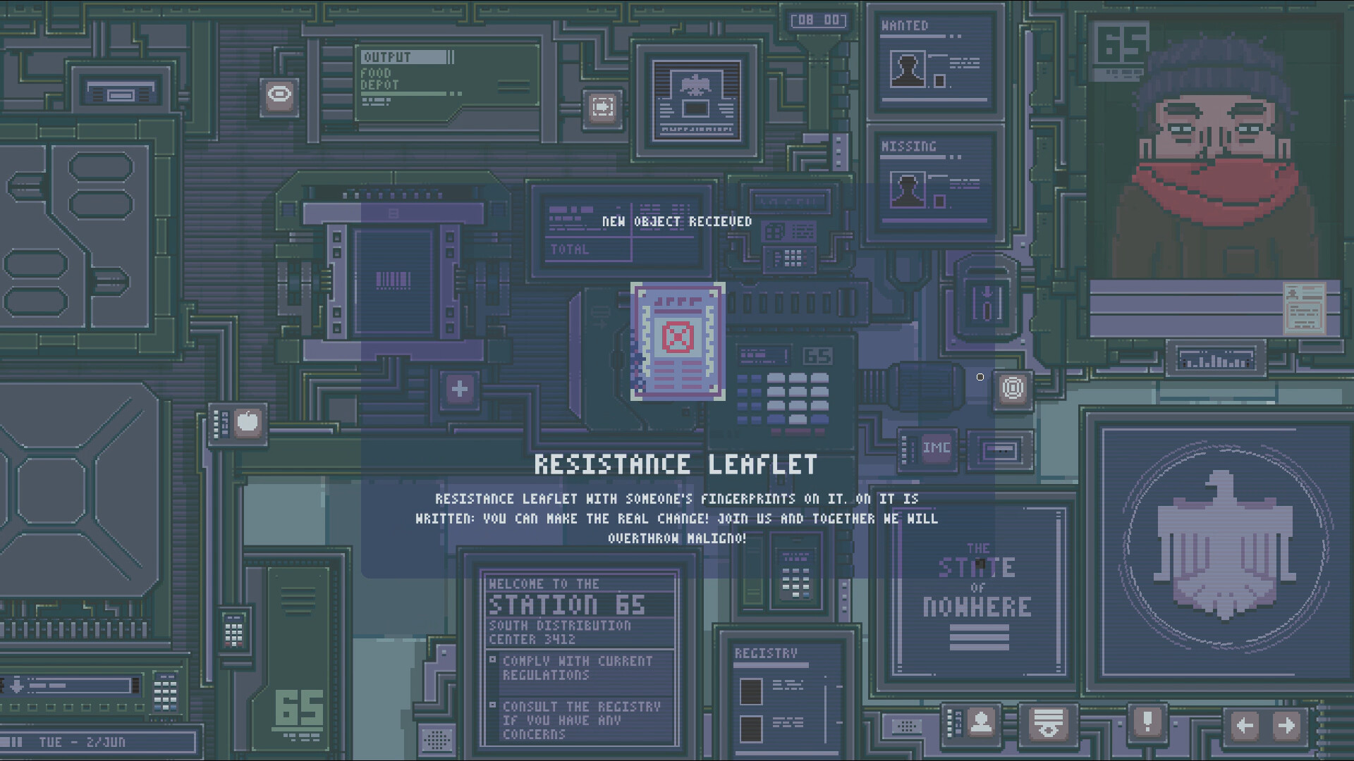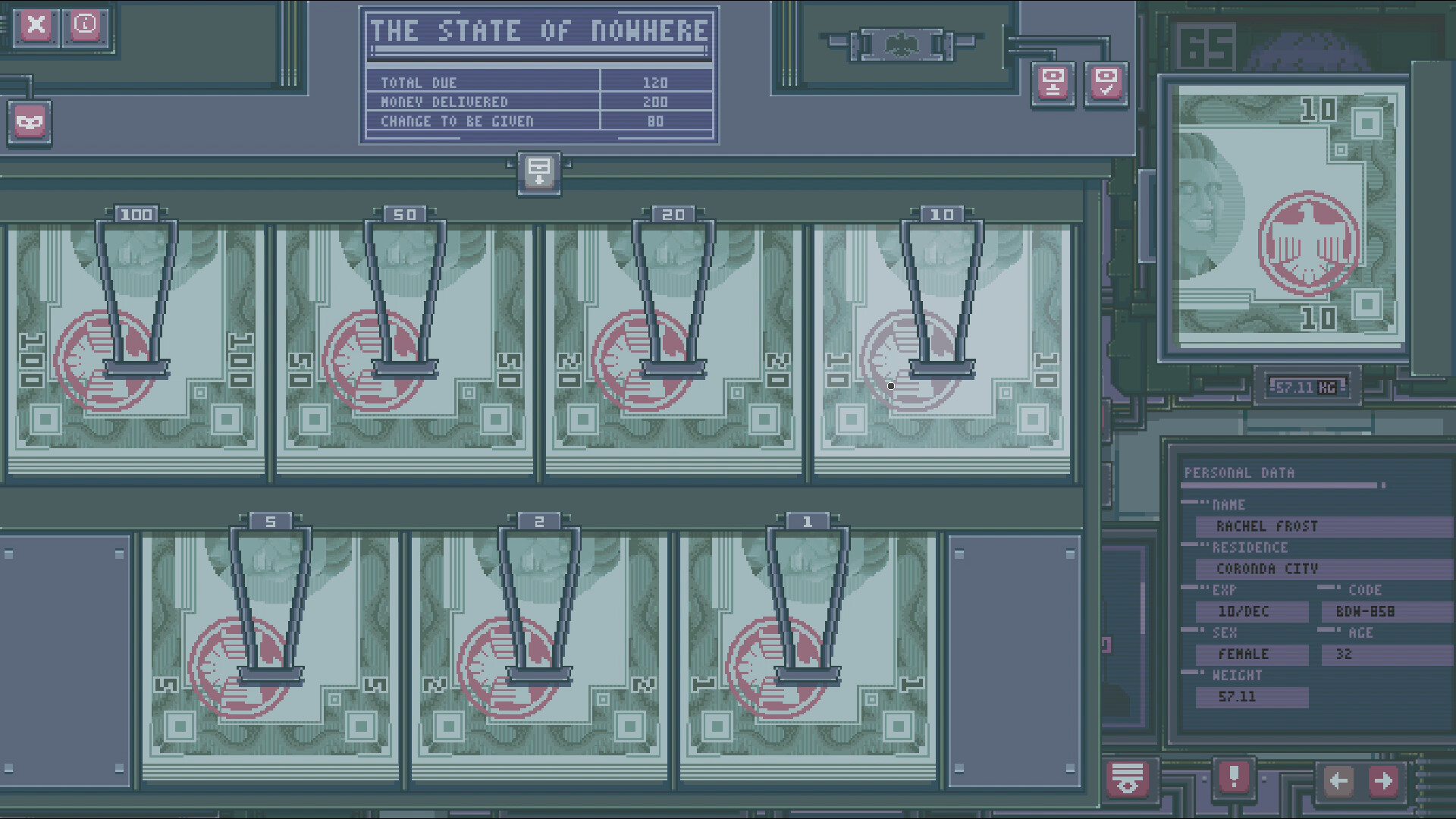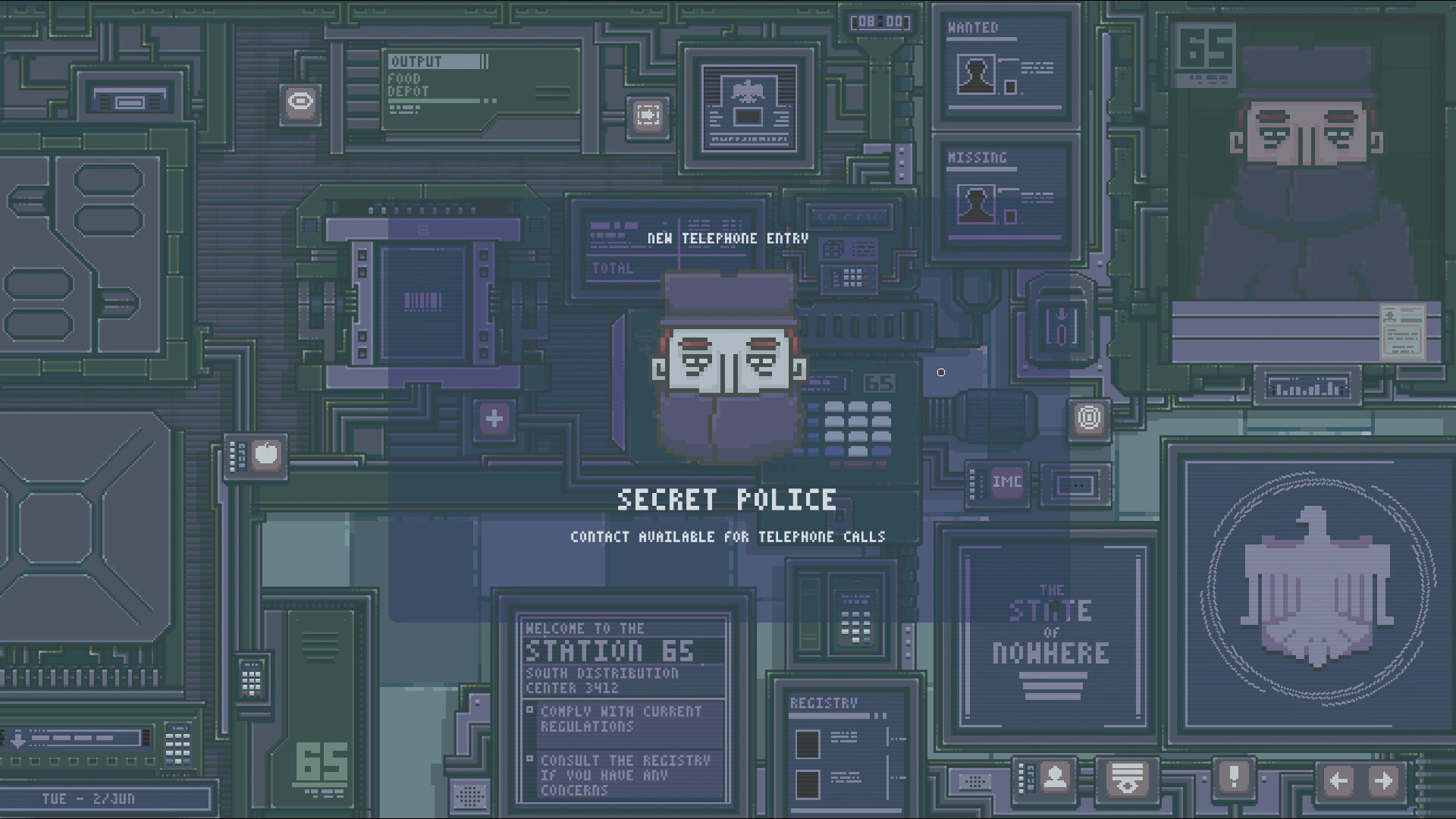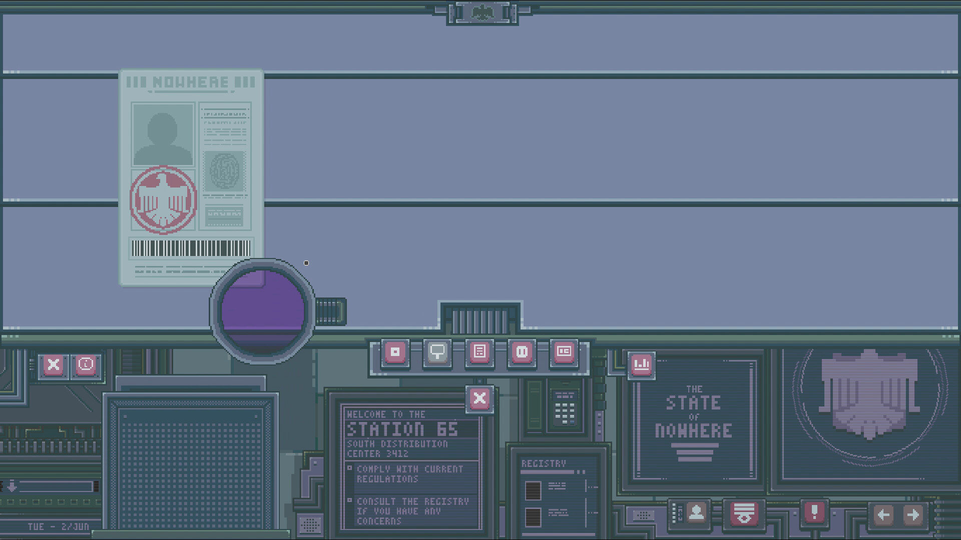 "The State of Nowhere" is a casual single-player simulation game set in a totalitarian state, where you take on the role of a state employee responsible for providing food to the citizens. It will be your responsibility to control and decide who will be able to receive their food. This will require you to perform a variety of tasks, including: