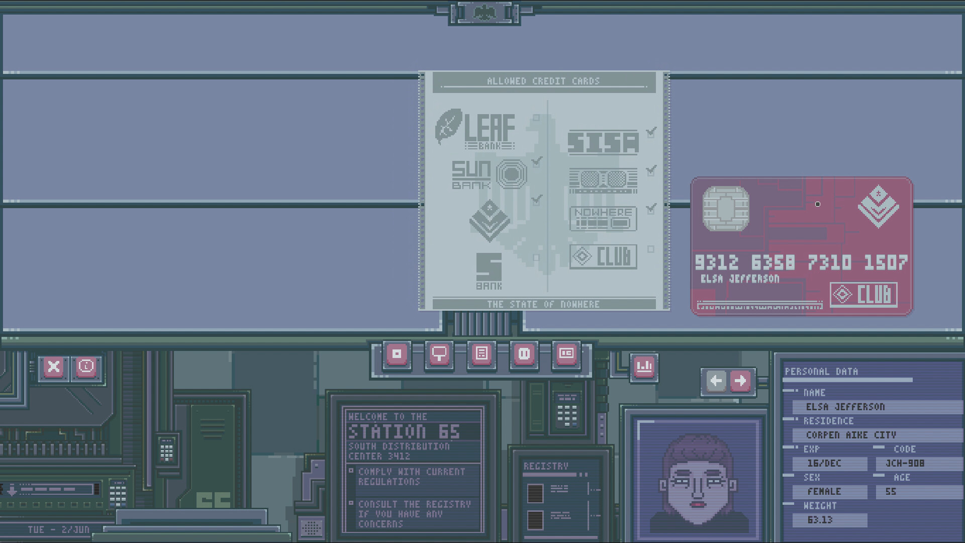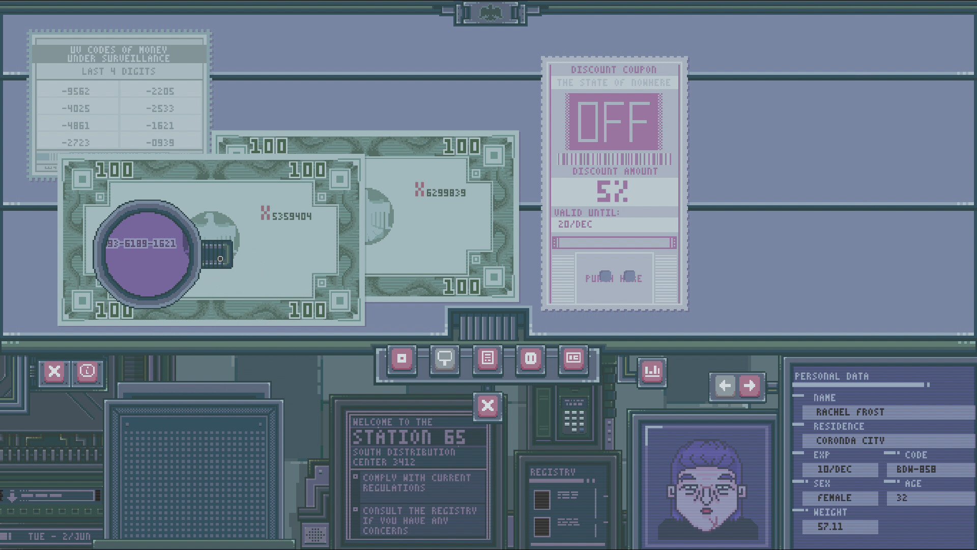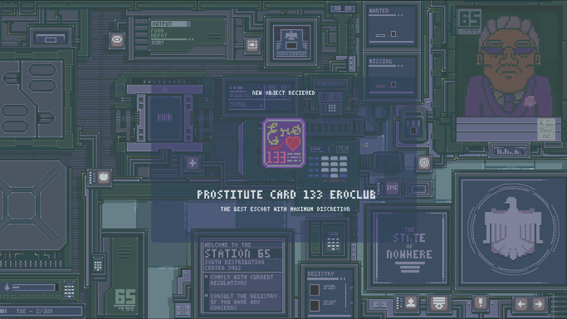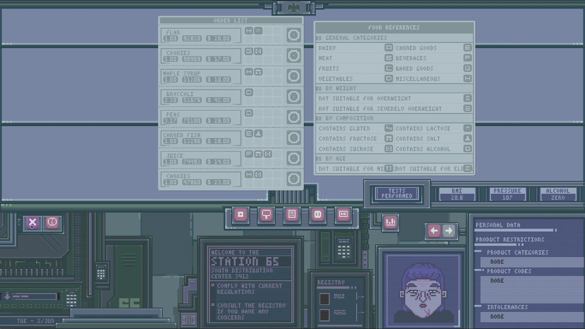 Assigned to station 65, your role as employee 100411 will be to serve and sell products to the people, exercising the controls the state deems necessary to keep the population in line