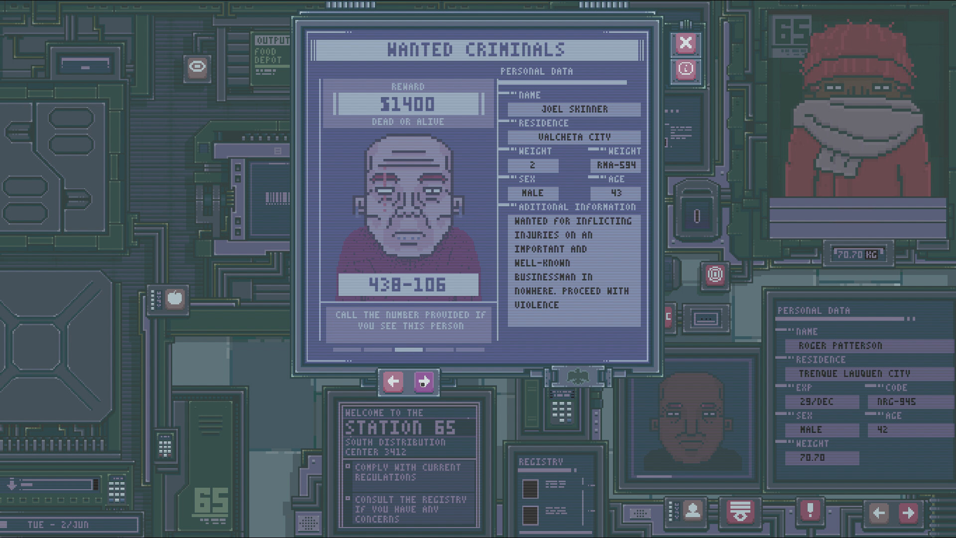But BEWARE! Forgers, alcoholics, robbers, thieves, wanted criminals, drug addicts, the poor – all of them will seek, by any means, to access the food. Your task will be to keep them at bay. ARREST civilians, become a subject to the regime, or REBEL... But ALL decisions have consequences.