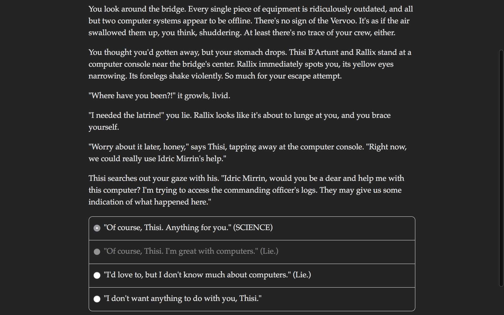 Play as male or female, and gay or straight. Will you unlock the mystery hidden in the heart of the ship? Its fate is in your hands!