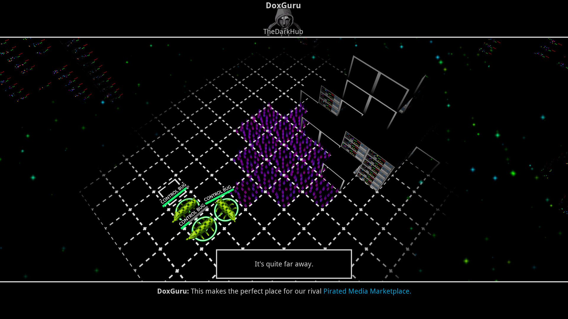 Your criminal enterprise resides on the Dark Web, a 3D topdown map filled with various resources, factions and hostile malware entities.