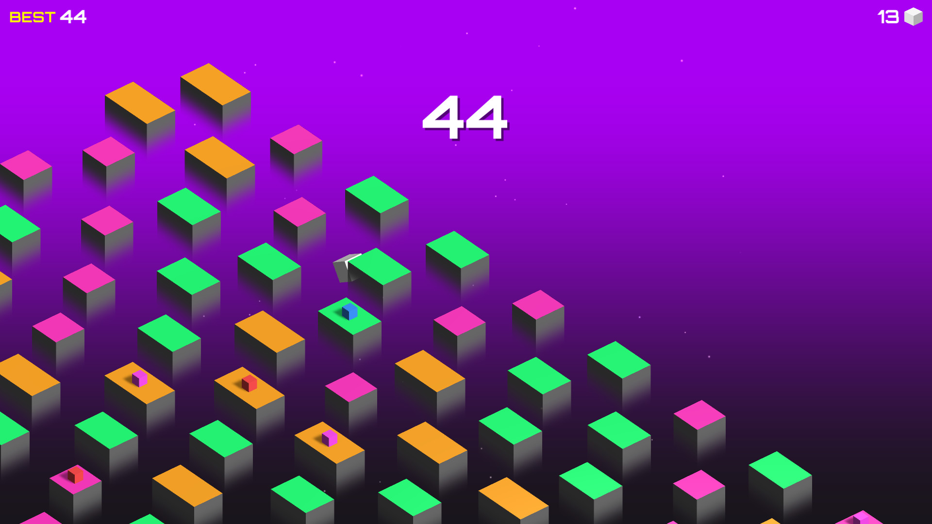 Jump from platform to platform in this minimalist puzzle platformer. All platforms except your starting platform move at different speeds, some even carry the coveted token. You make a jump from one platform to another at the right moment and try not to fall into the abyss. In addition to the speed, the platforms may differ in size and this brings a challenge to the gameplay. And don't stay on the platforms for too long, otherwise you will lose if you touch the edges of the screen. Collect a lot of tokens and good luck with your game.