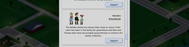 • Share your creations with the community by exporting lots and households from your game