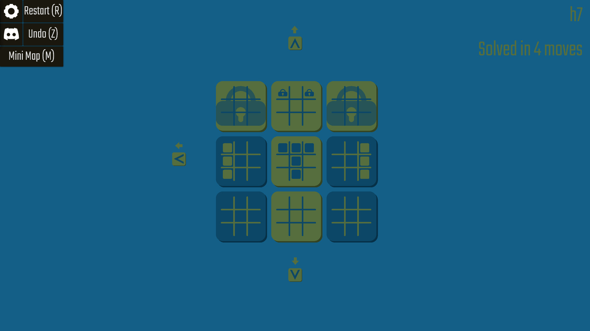 Toggle, shift and rotate tiles to turn them all on. Each tile has a grid inside it that affects the whole board when clicked. Explore the surprising complexity arising from the interactions between the different effects.