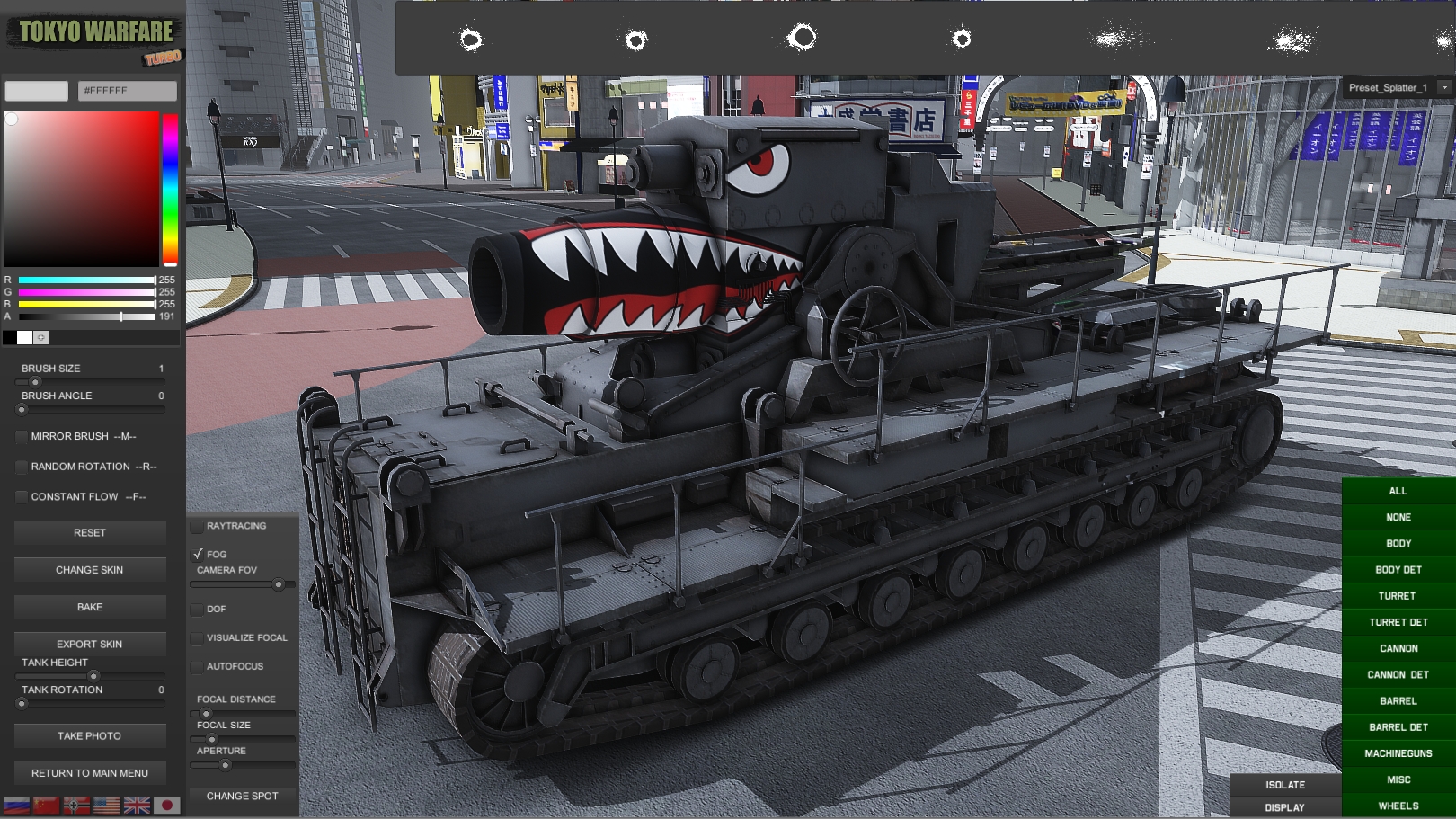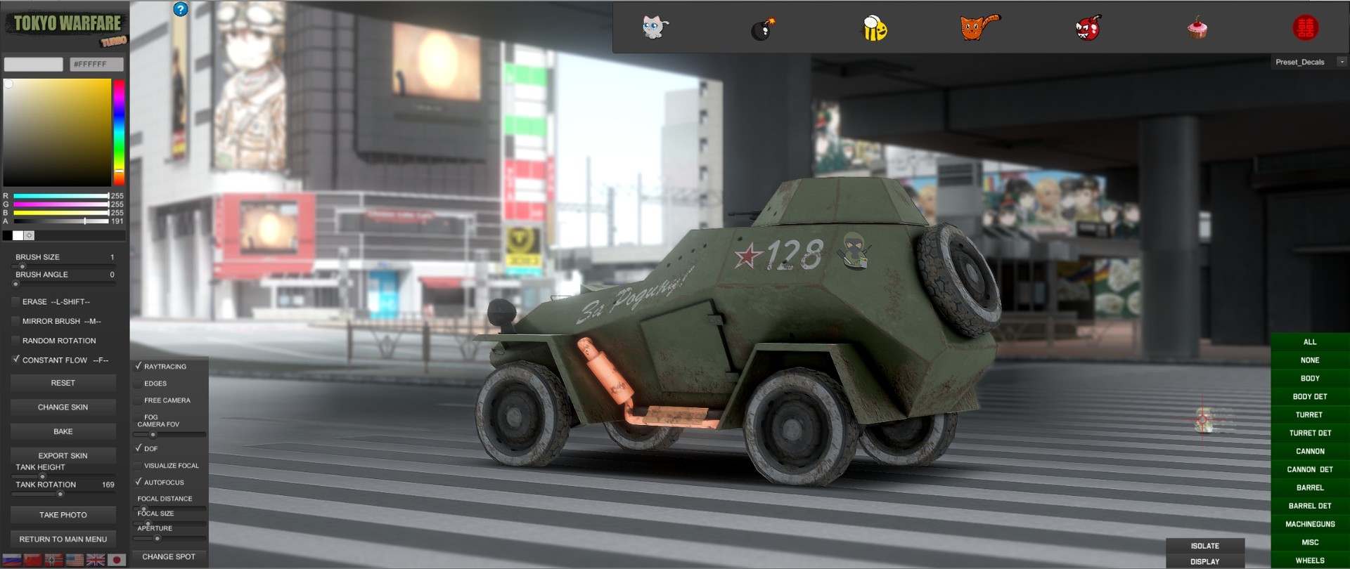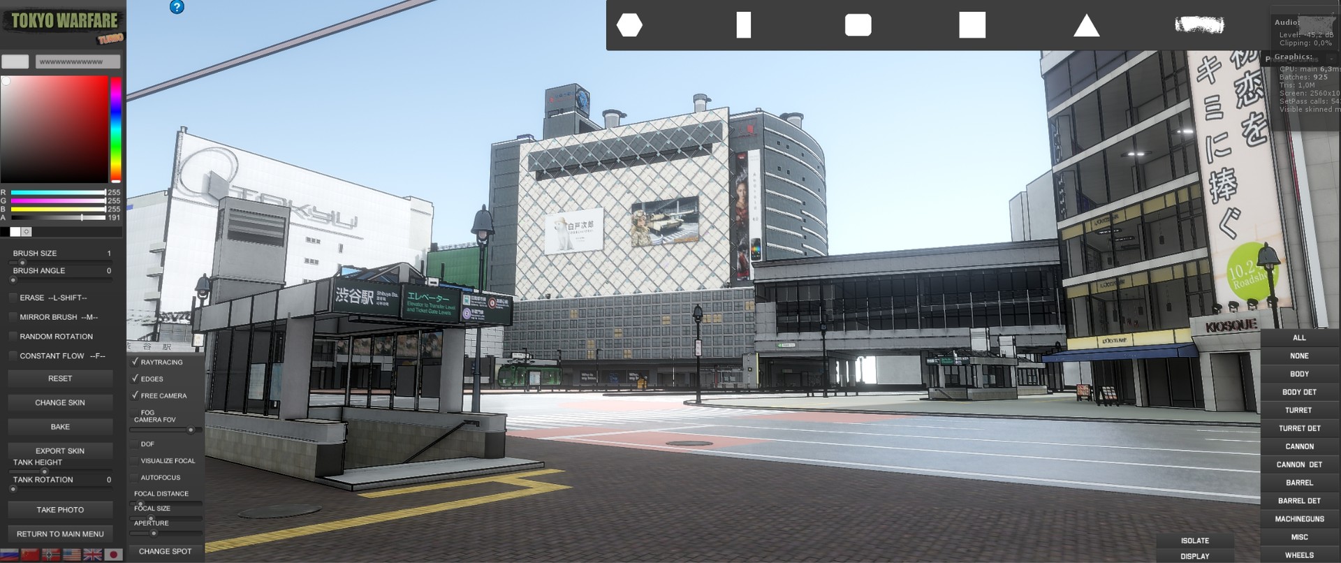 SHIBUYA CROSSING In addition to the editior tools you get a superb model of the Shibuya Crossing where you can move the tank around different spots to get you neat shots. Editor photo button will hide when taking a picture, also, for you to get the desired shots a number of camera options are available such FOV, DOF among others.