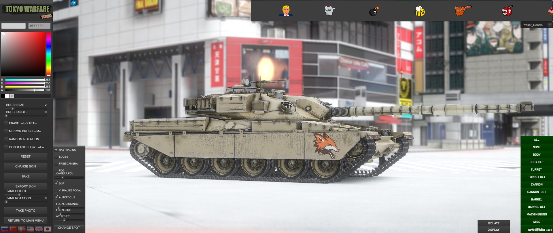 THE TOOL Paint any of the available tanks with unlimited decals to fit it to your style. Start with the many preset decals and brushes or import your custom ones, simply place theese on a directory and they'll appear in the editor.