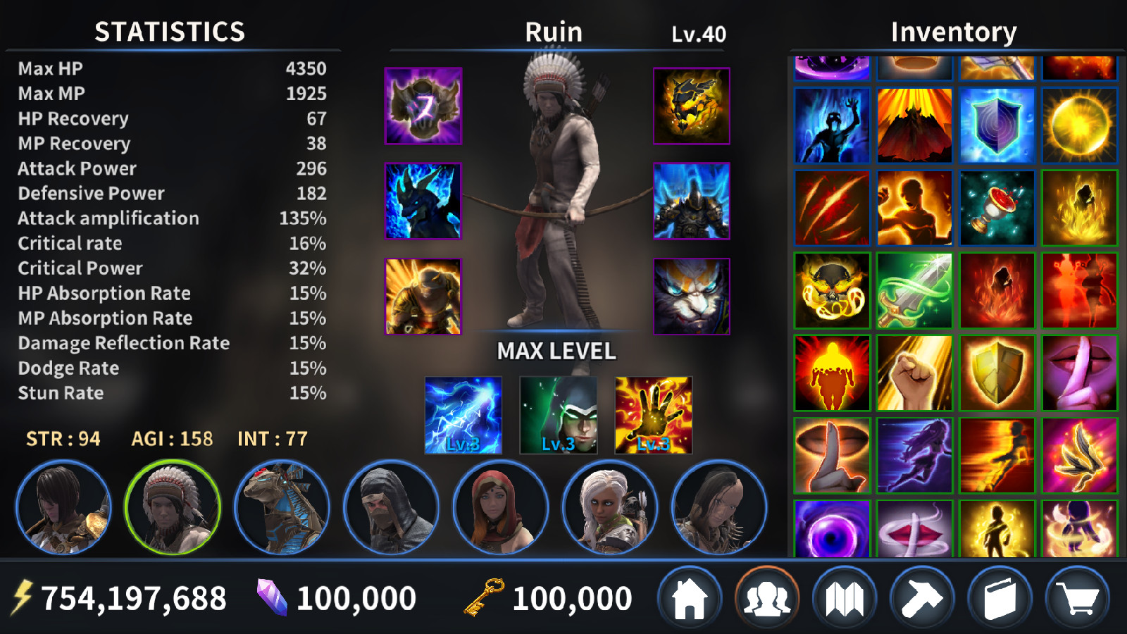 It can be equipped with 6 items and is divided into STR, AGI, and INT types.