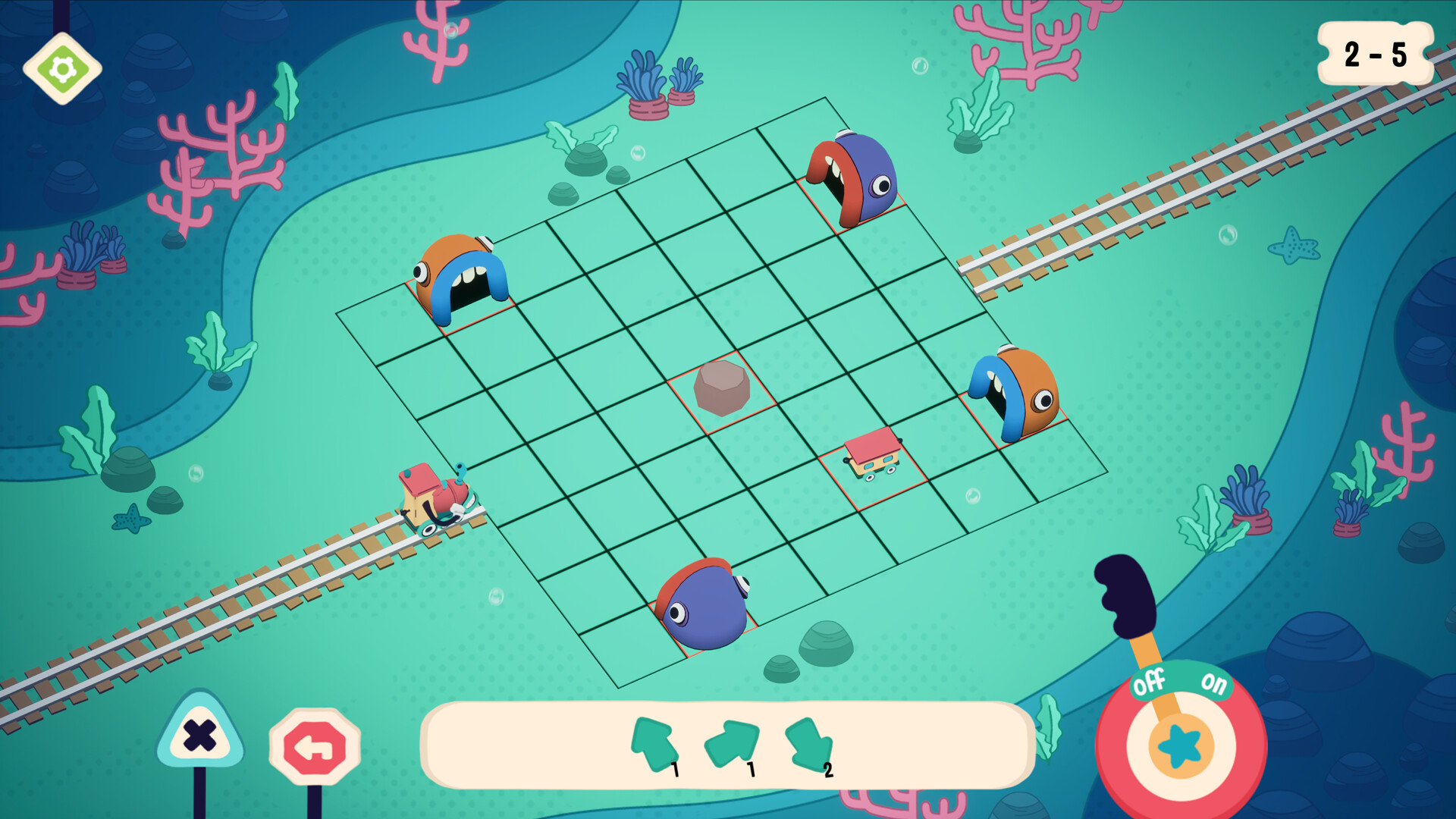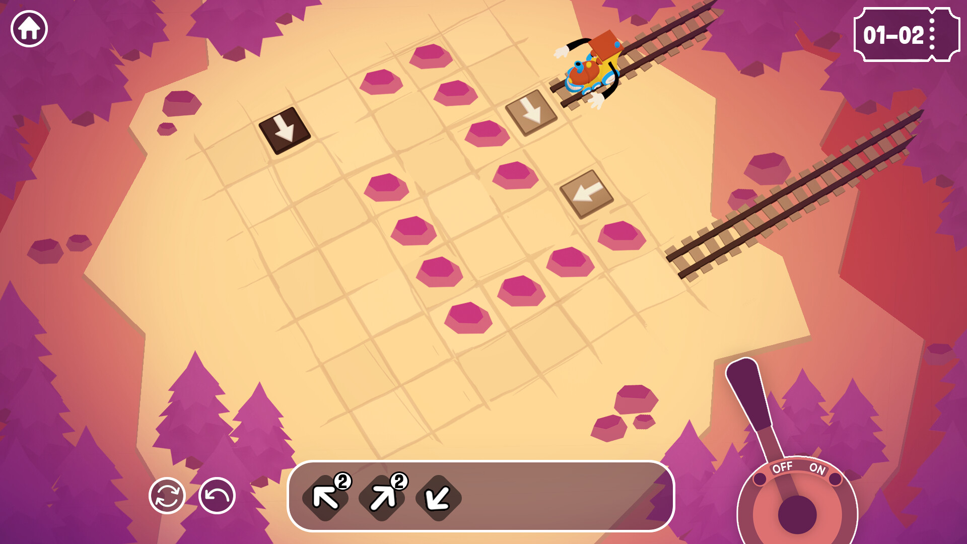 Analyse the maps, make a path by placing a variety of different track tiles, then pray your train gets to the end in one piece!