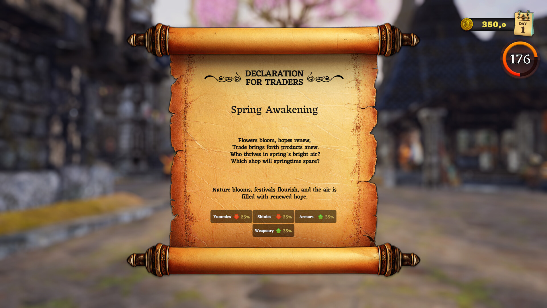 Each run begins with one of 25 randomized economic scenarios that shift product prices and stock levels. Every day, players have limited time to: