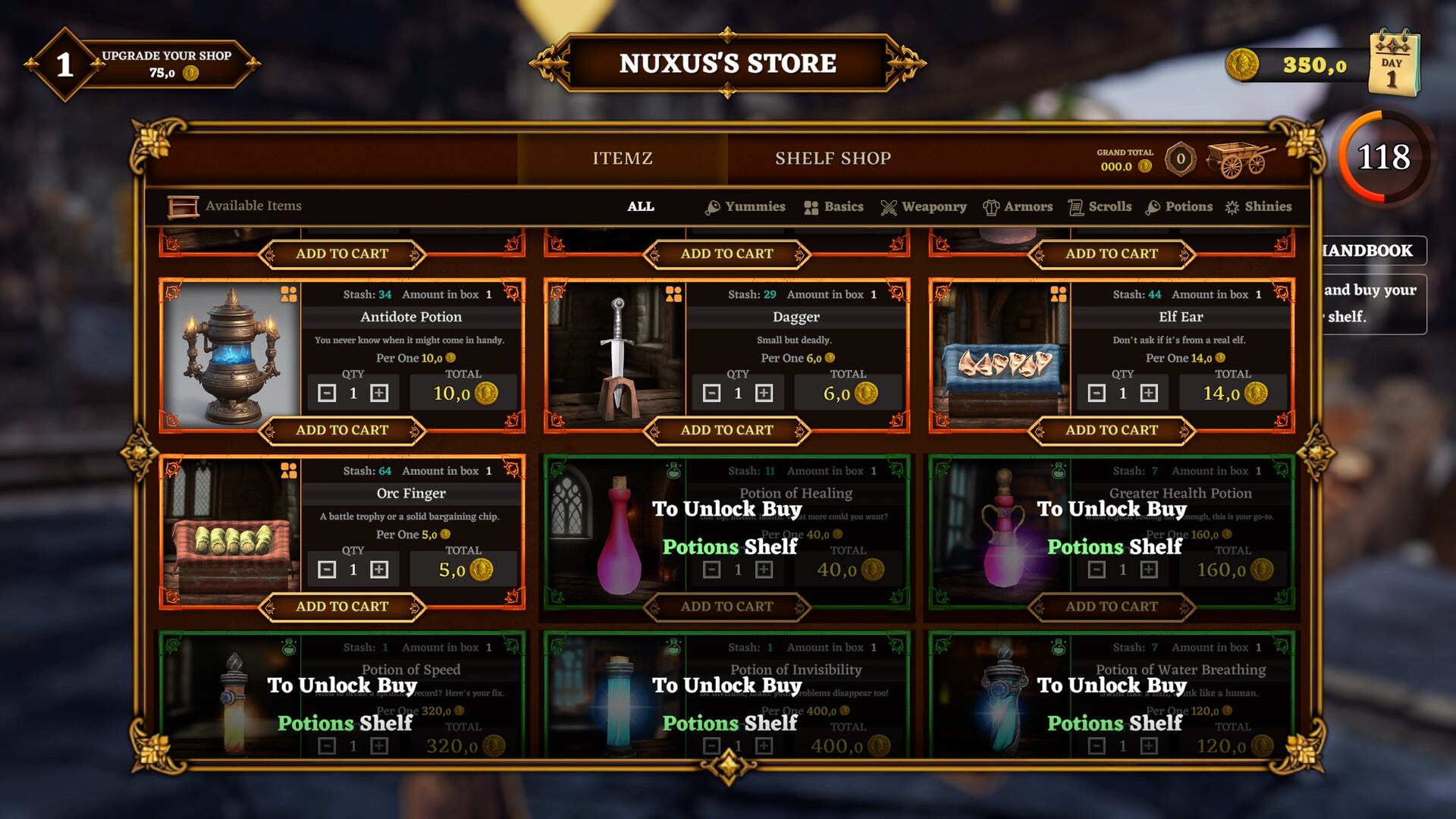 A chaotic 2–4 player competitive shop management game where gutsy pricing, clever shelf setups, and sneaky sabotage are your weapons in the market war.