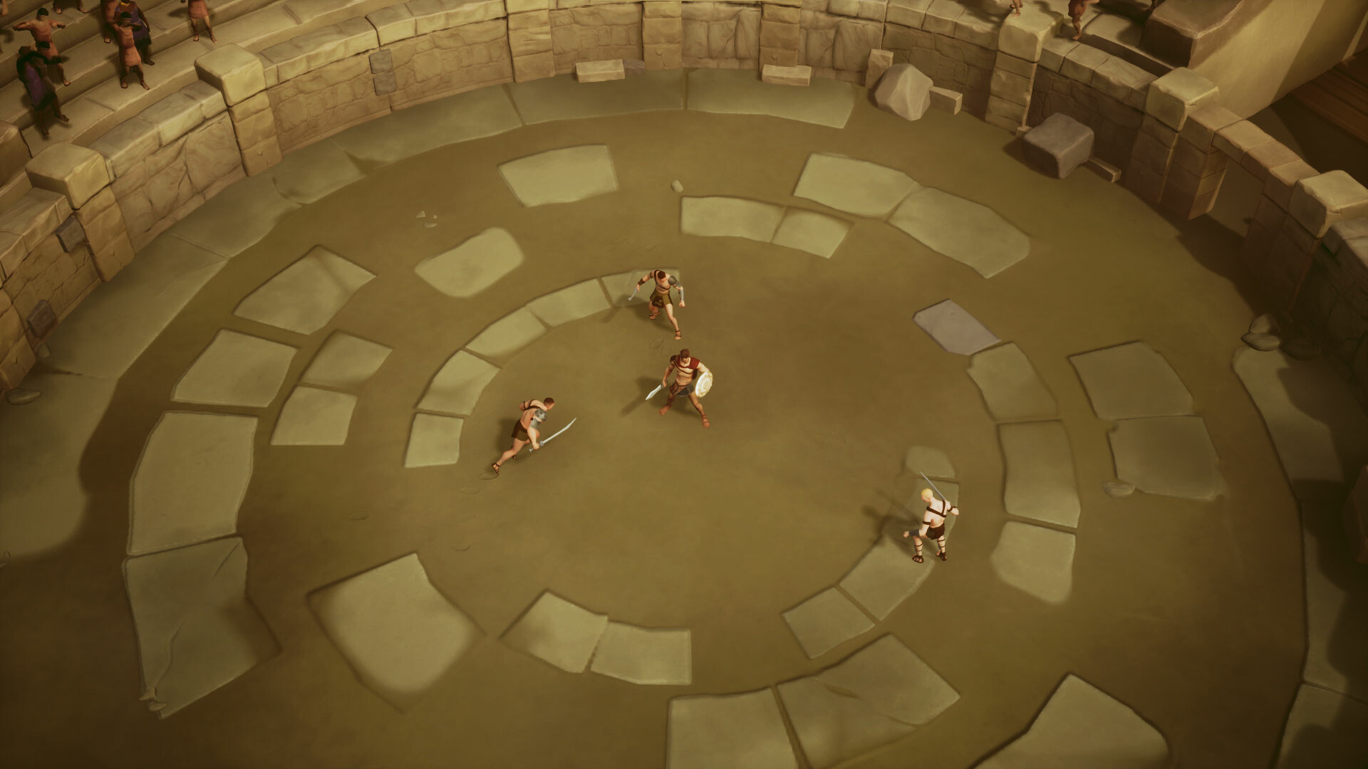 Combat in an isometric style, similar to the isometric style, with an overhead view camera angle.