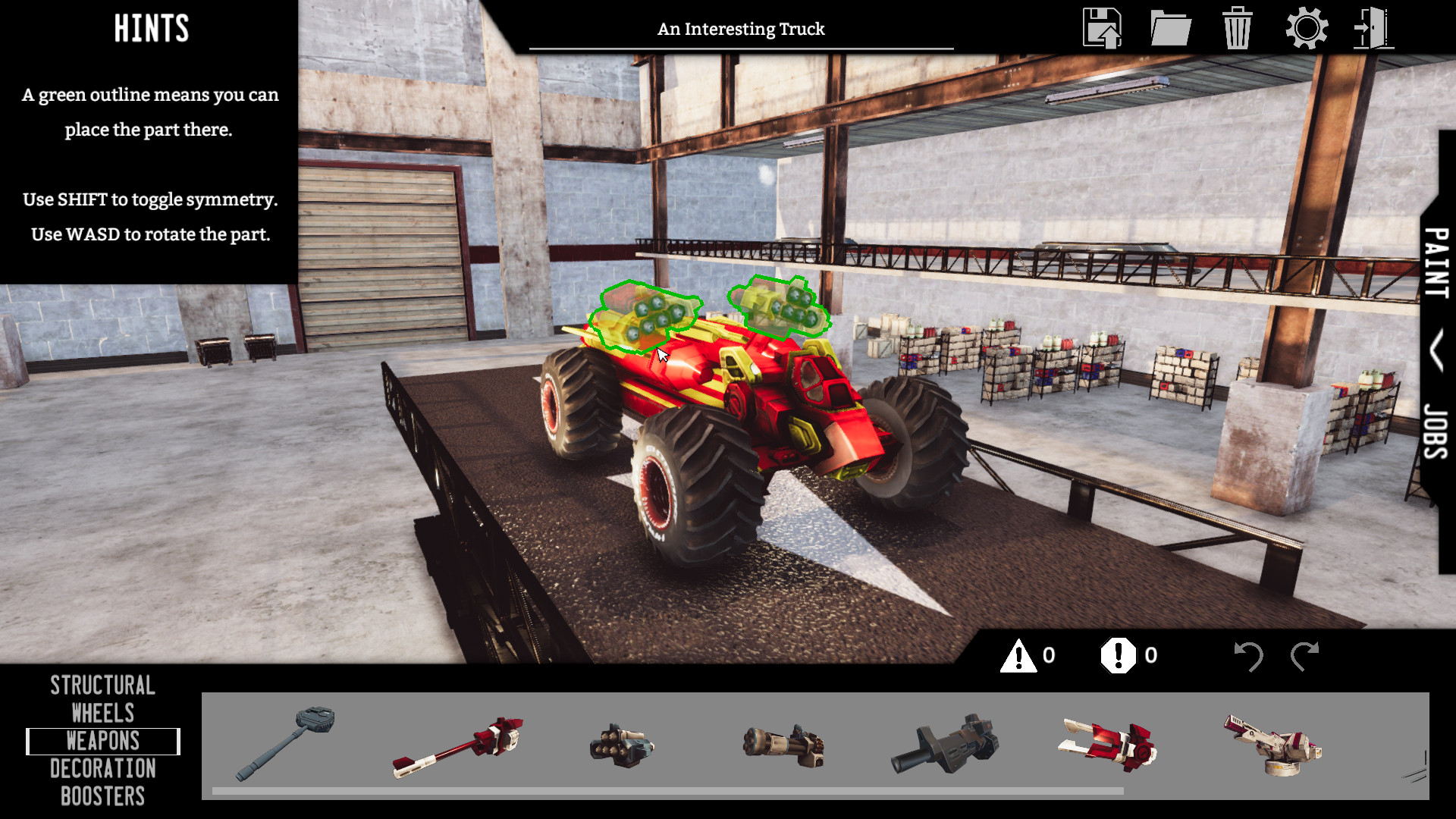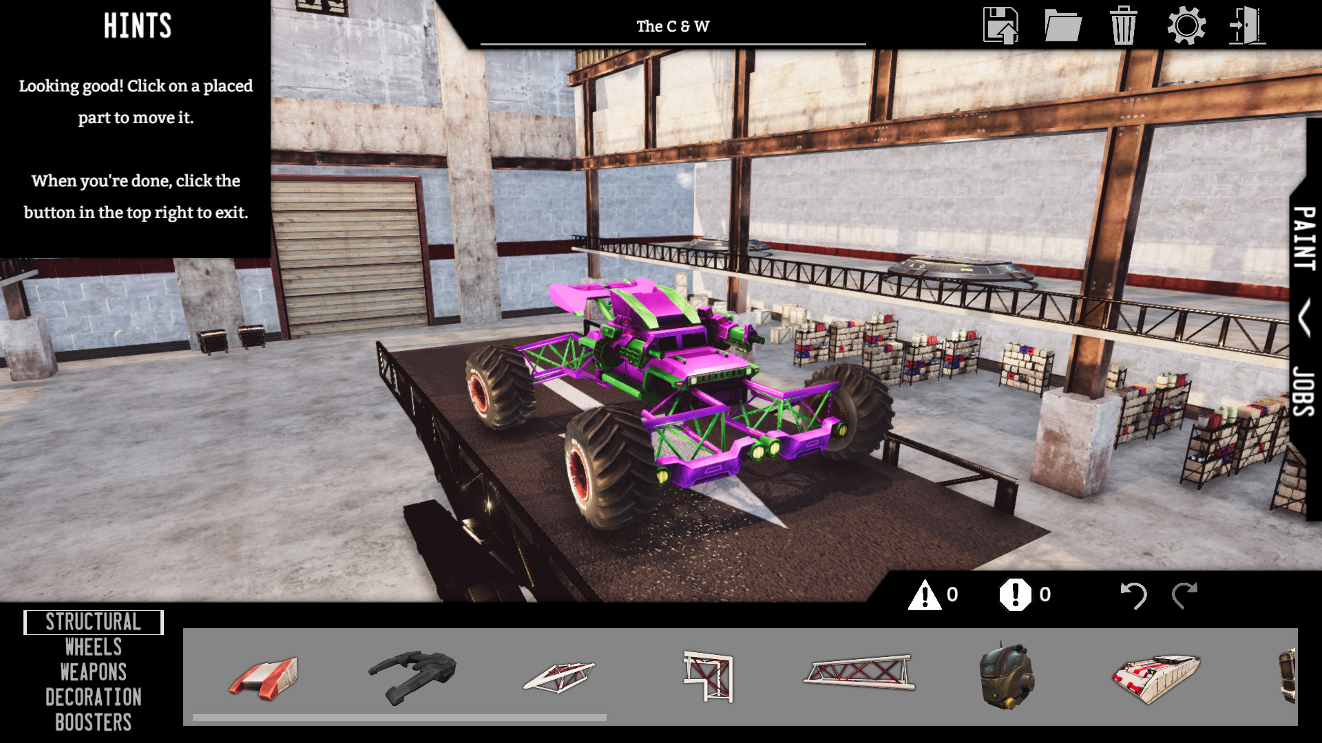 Edit your truck mid-race! You can modify your truck seamlessly at any point during a level. Truck too slow? Just add some boosters
