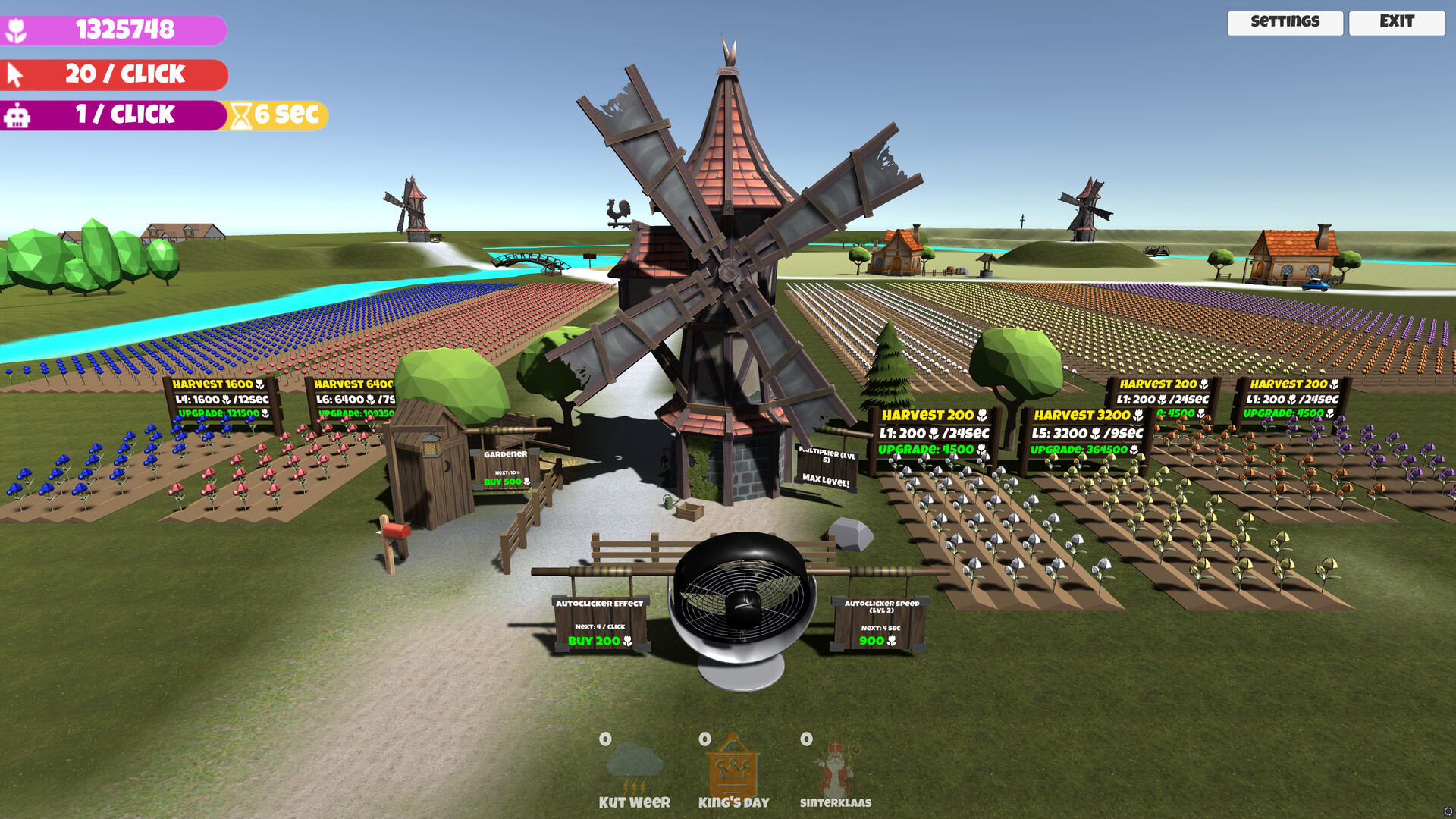 Multipliers:Â Upgrade your windmill and tulip fields to maximize profits and speed.