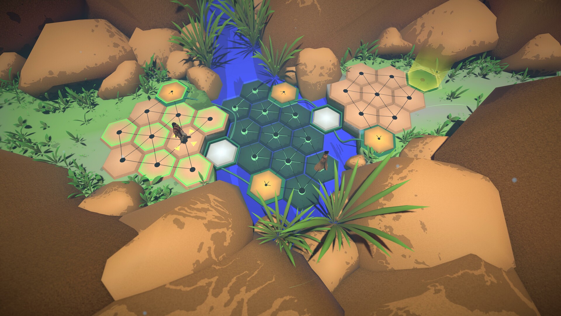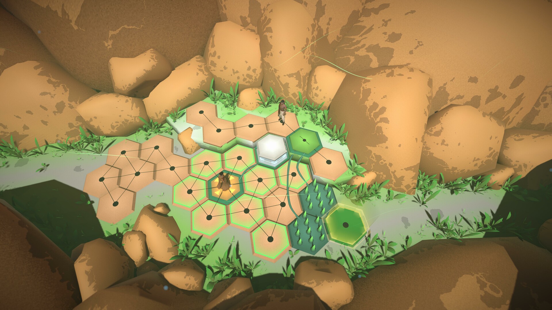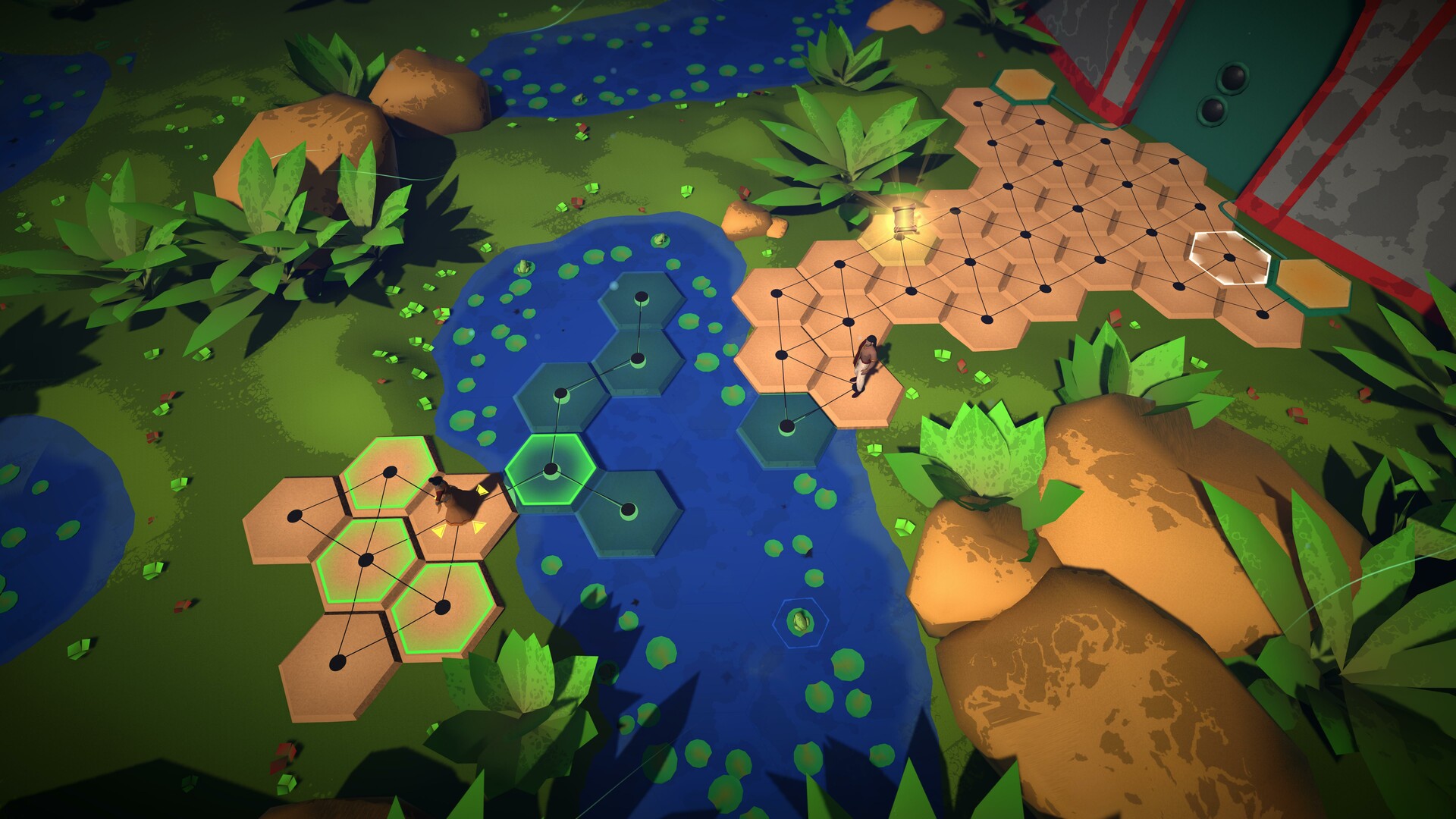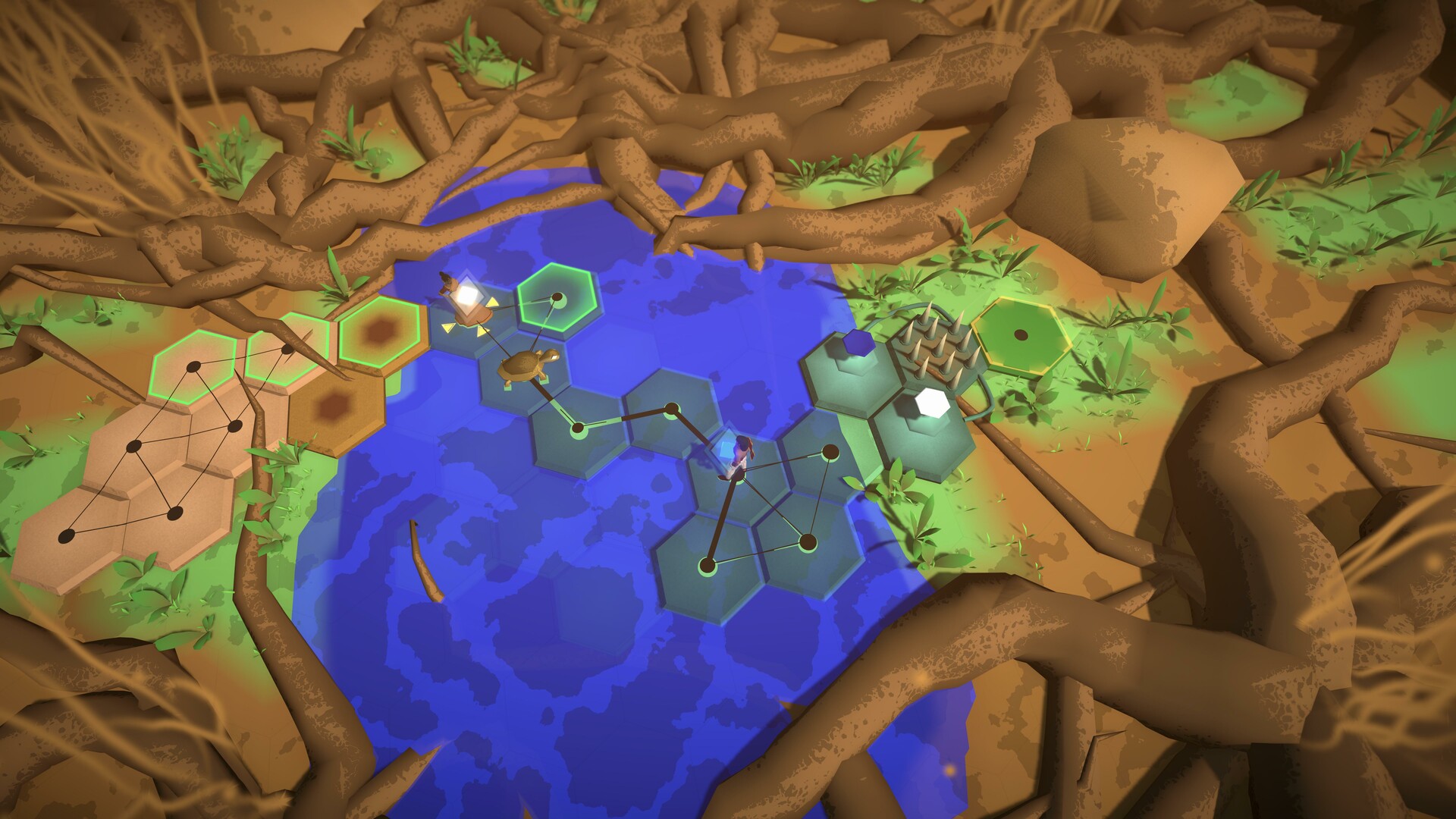 Move both characters across handcrafted hex-grid puzzles, explore soft low-poly environments, and discover a story inspired by myth, connection, and quiet moments.