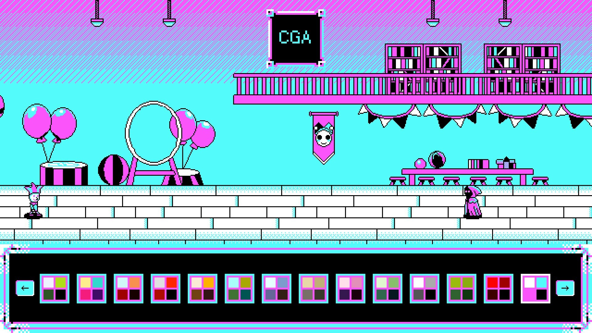 2 playable characters, a female and a male jester