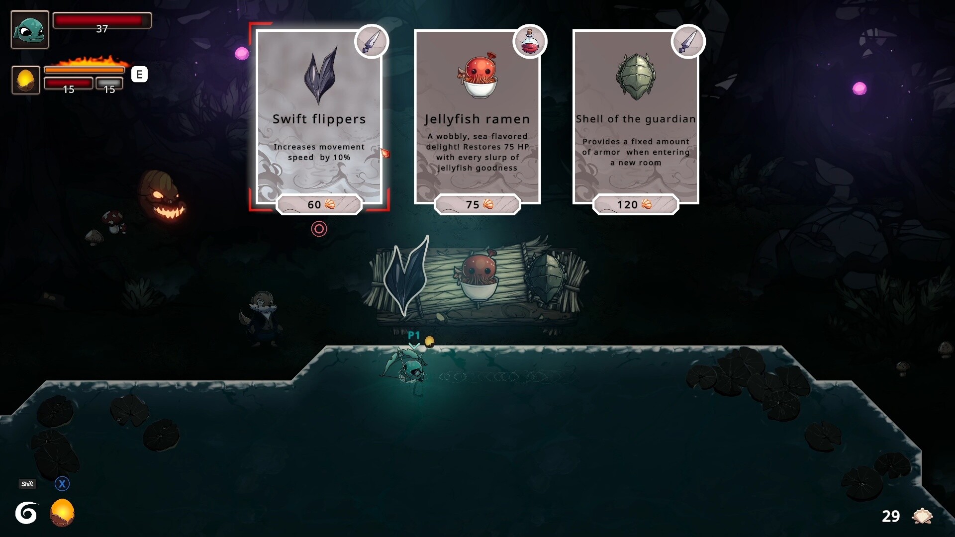 In Umigame, you are a battle-hardened sea turtle on a perilous mission—defeat the witch Maeve and free the Haunted Swamp from her curse. Fight through relentless enemies, adapt to ever-changing challenges, and grow stronger with every run in this fast-paced roguelite.