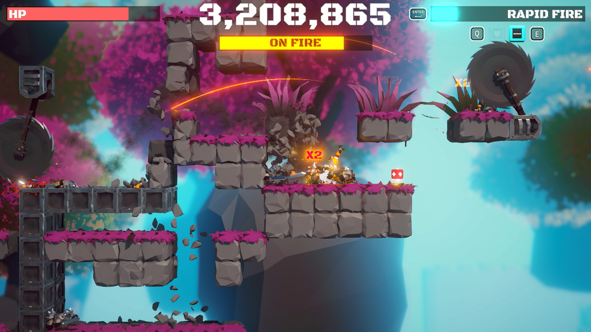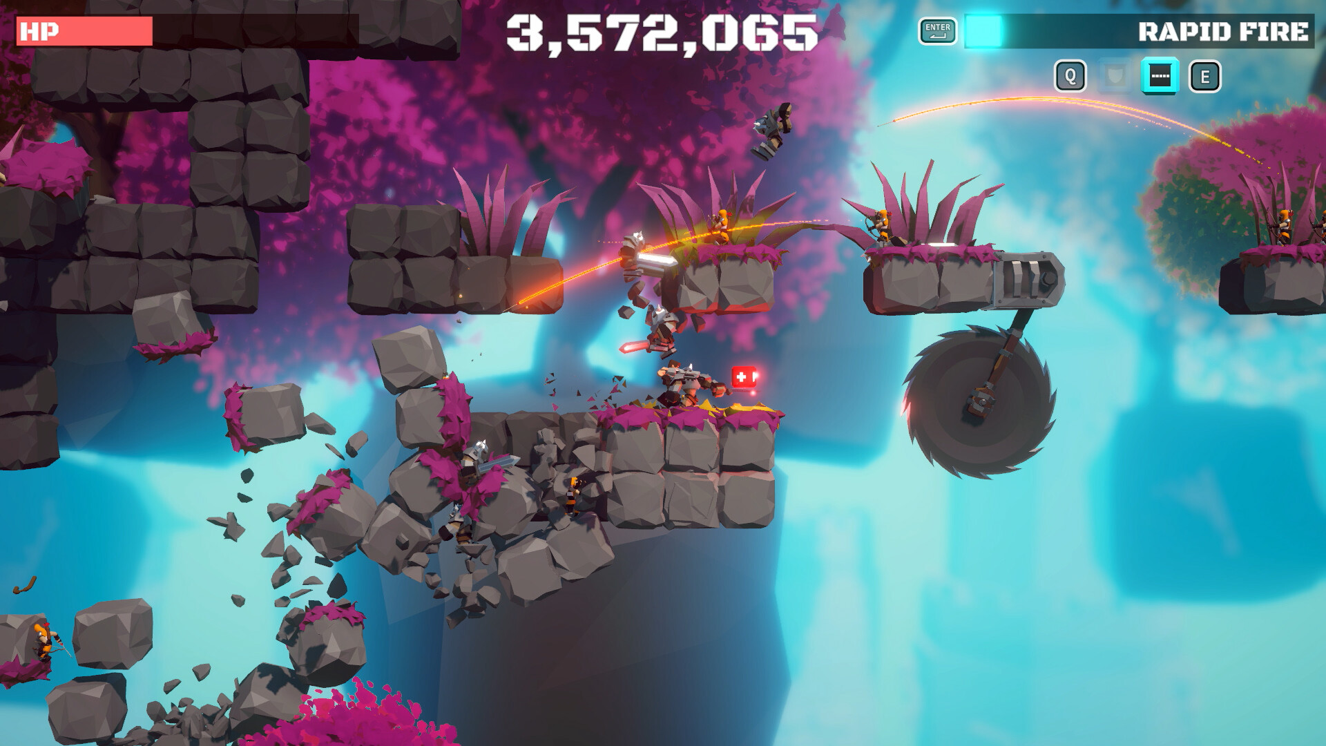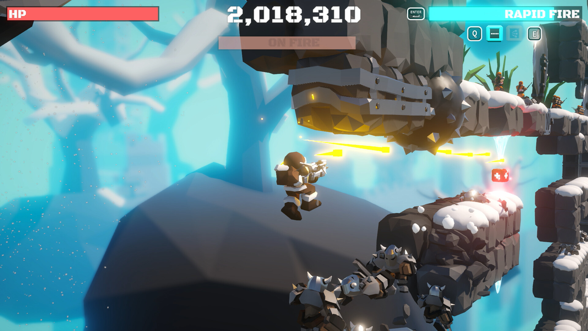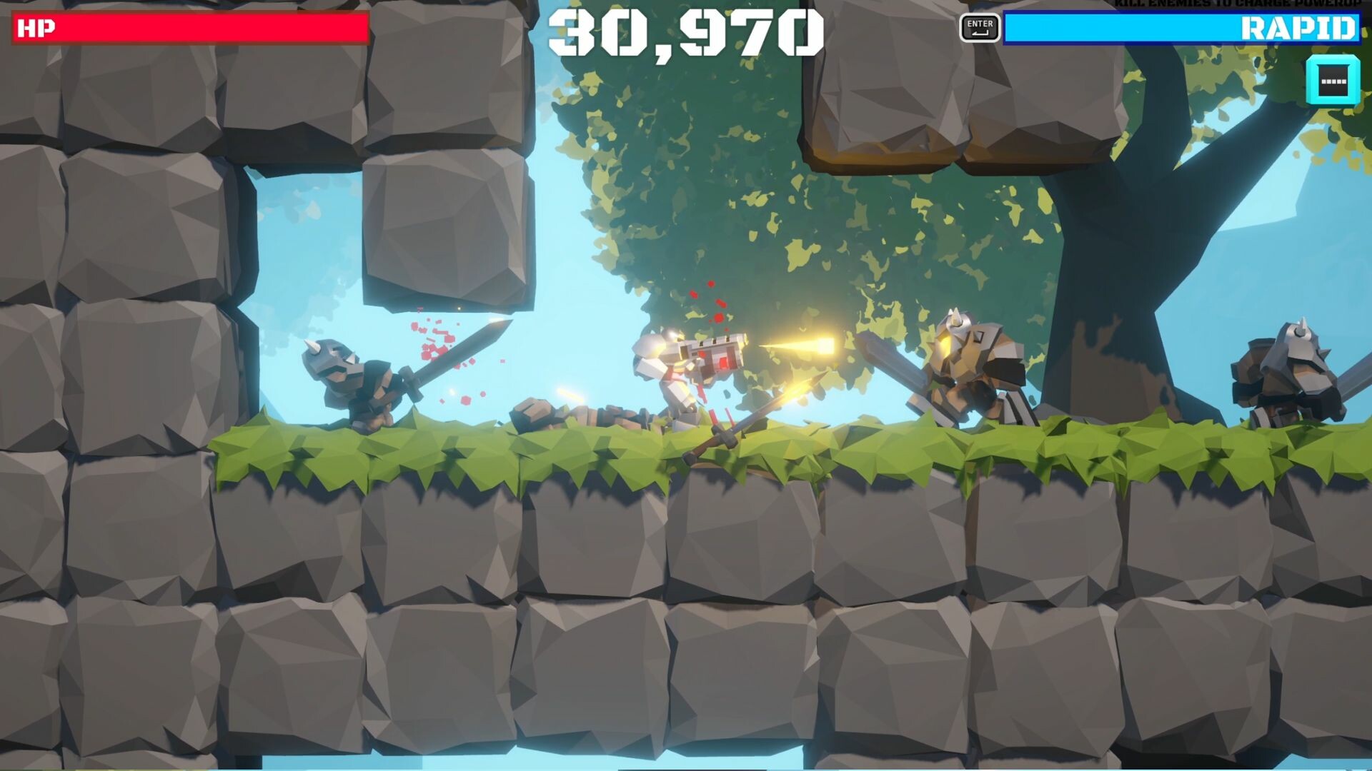 Go back in time with a big gun and shiny armor and dominate! It’s FAST, and you are in FULL CONTROL in this 2.5D platformer. Before you know it, you’ll be in the zone, dashing, double-jumping, and ploughing through enemies while dodging hazards and racking up a high score!