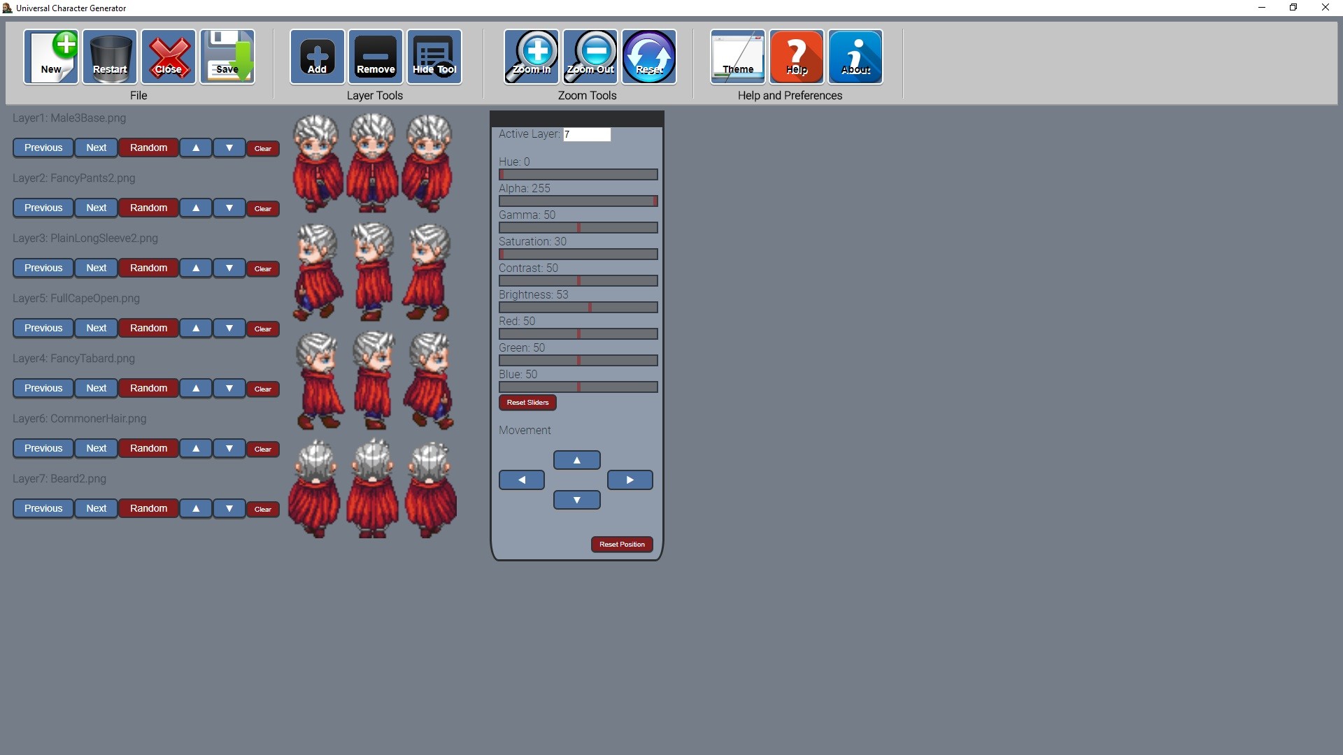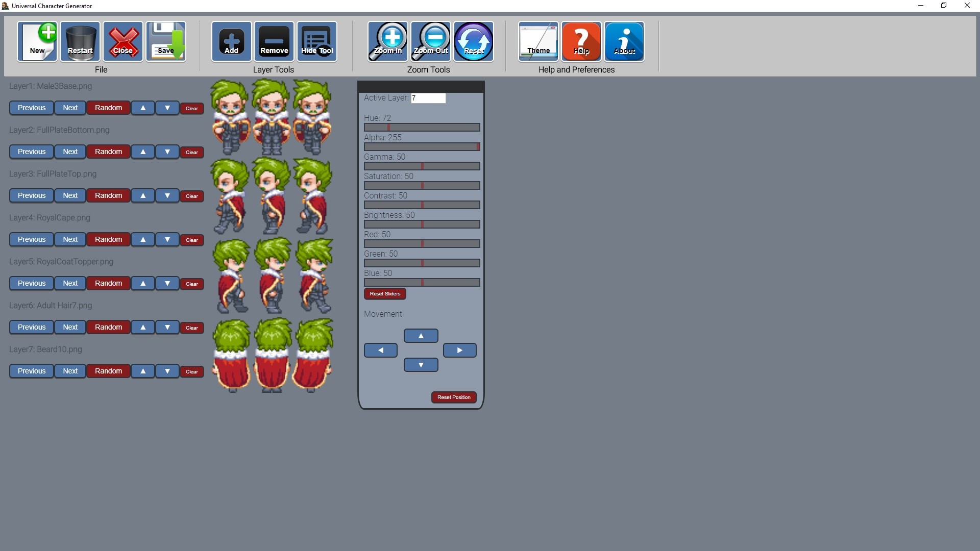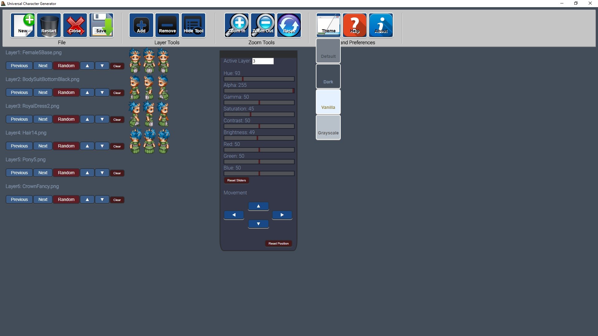 This light-weight program allows you to add an unlimited number of layers on any sized canvas - perfect for developers looking to do assembly and recolors of packs of assets, sprites, faces, tiles, or anything else you'd like to edit!
