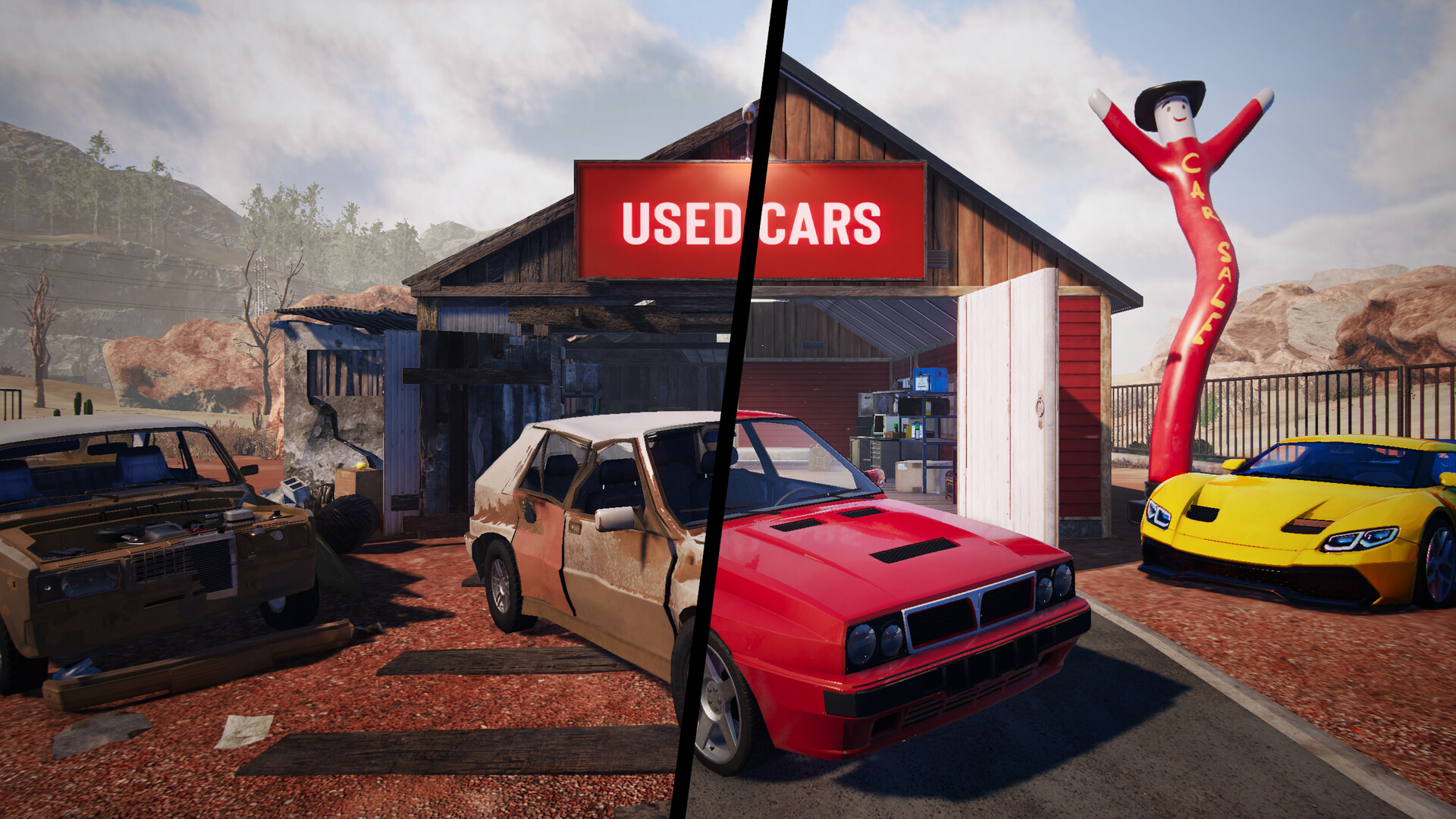 In Used Cars Simulator, you’ll fix up cars, put them up for sale, grow your business in an old shed, drive around an abandoned city, drink beer, and wander the desert with a metal detector.