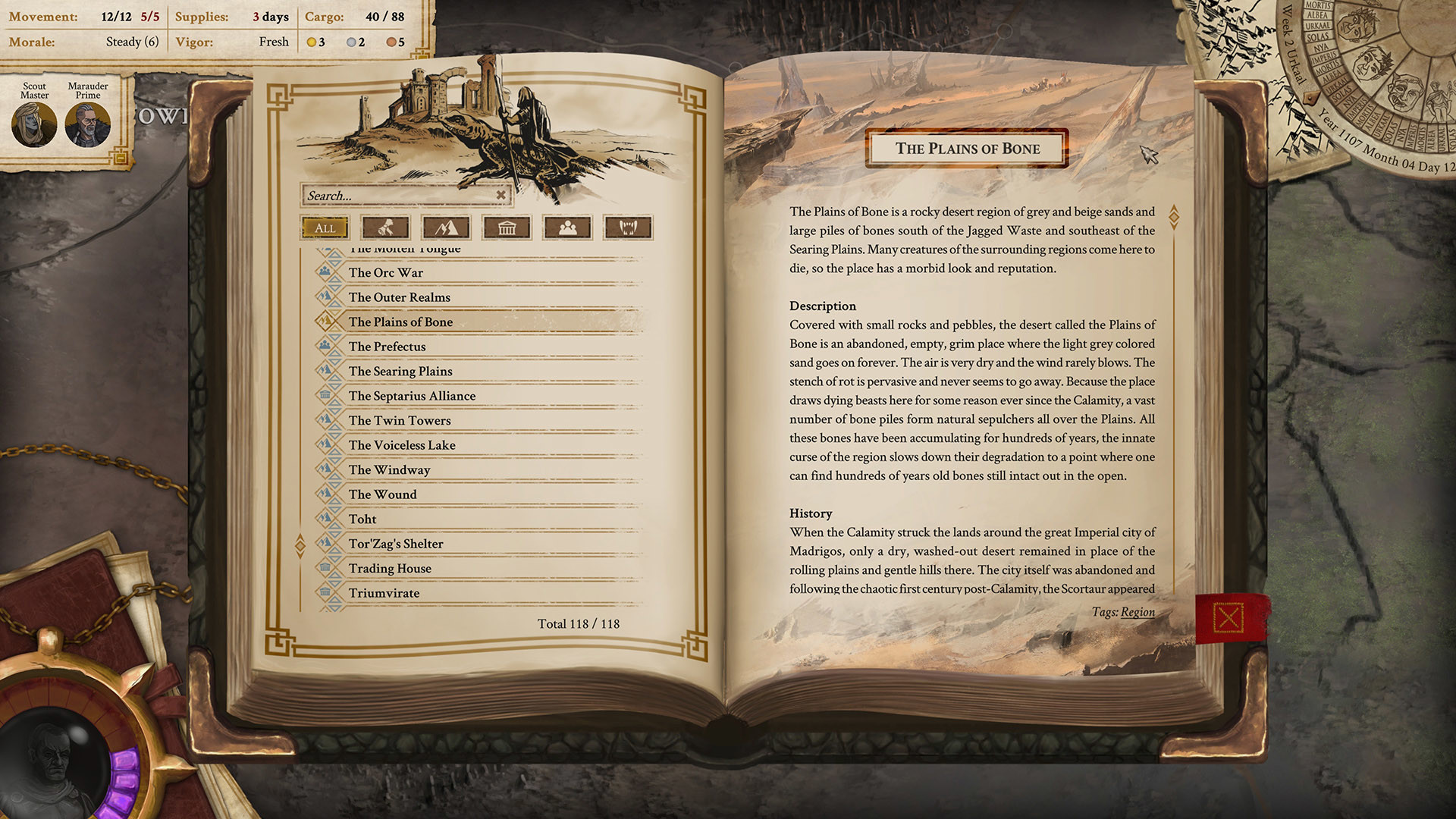 A large selection of stories make up the game’s narrative in the form of events and quests. The choices you make in these often affect your companions and the world around you. Pick your background from trader, mercenary, or explorer; work for factions, follow rumors and trading opportunities; acquire wealth, gain fame, and discover hidden knowledge.