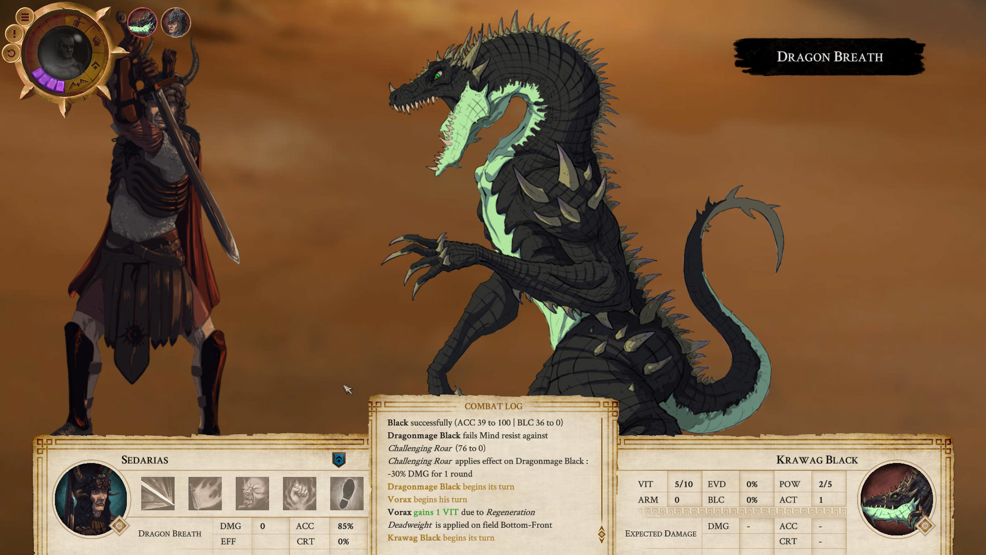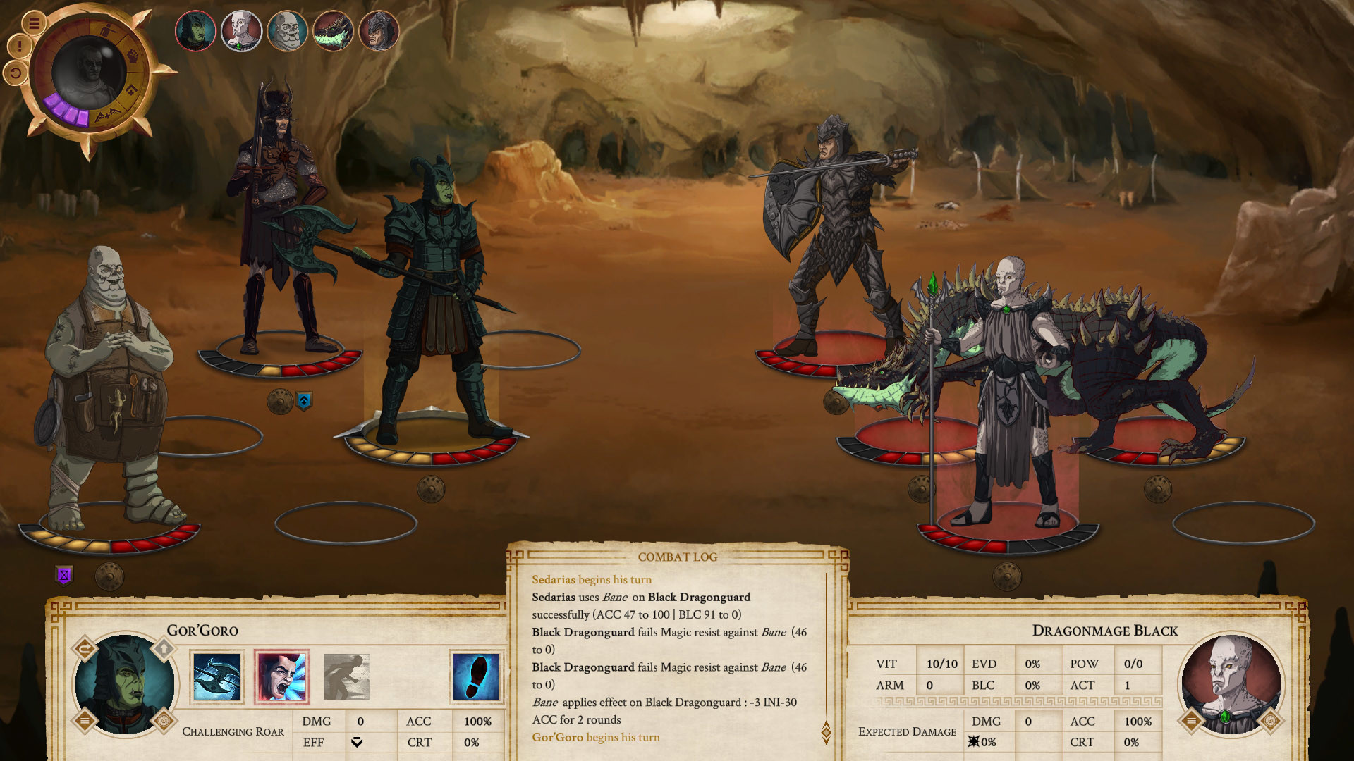 Engage in turn-based, tactical combat that involves your companions and a large variety of enemies, both humanoid and monstrous. Use a wide range of character skills as well as your own leadership-related abilities to succeed. Positioning and support skills are of paramount importance in these challenging engagements.