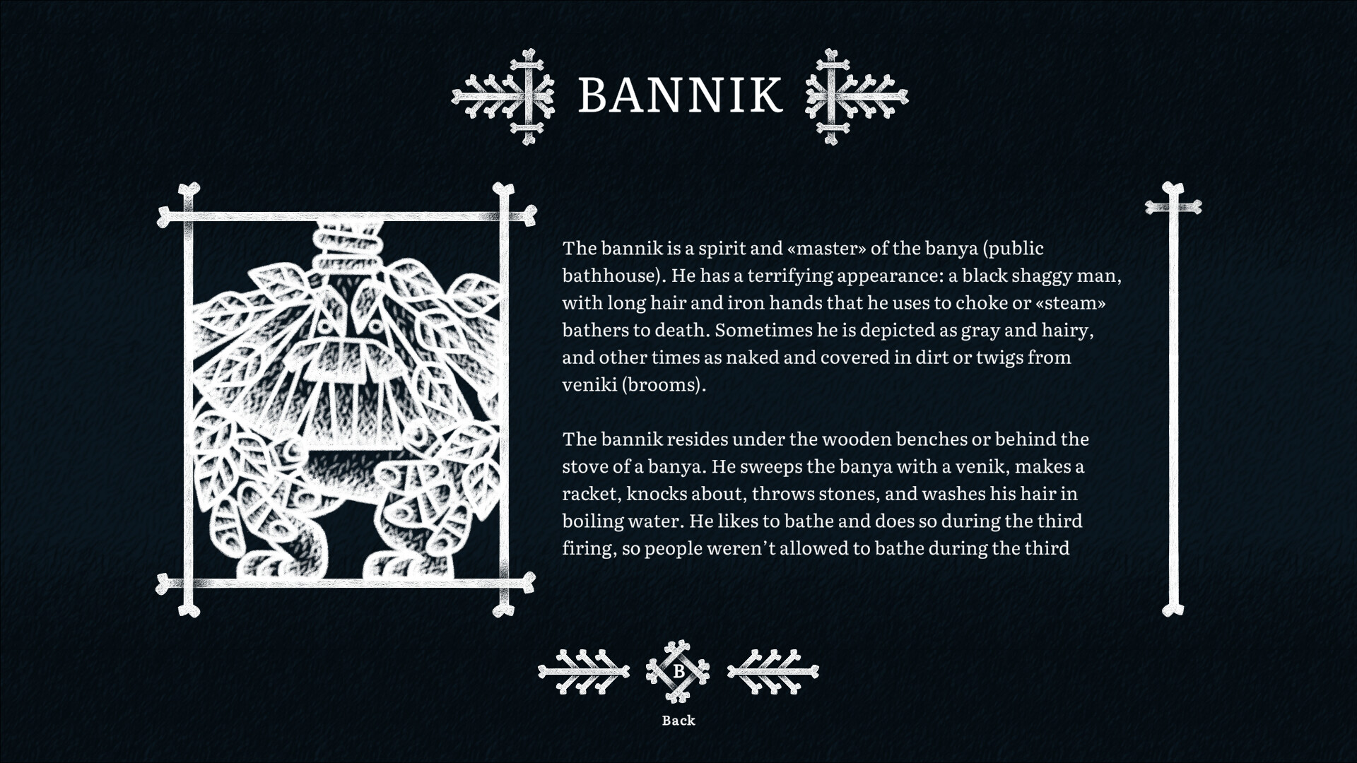 An action adventure game in which you, as a magic doll, will fight evil spirits at night. You will be met by malicious opponents - a bannik, a ovinnik and a kikimora. Find a way to defeat them in a fair fight and teach them a lesson so that they will remember it for a long time!