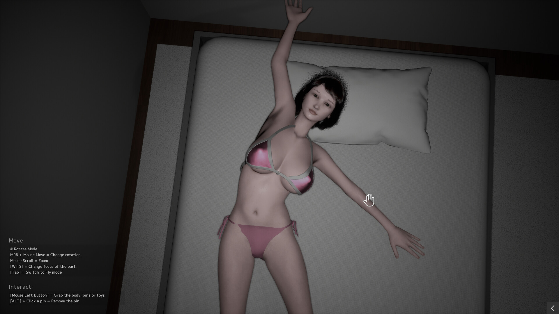 # Controlling the posture The body is controlled by a physics engine. By grabbing each body part and fixing it in the air, the body can be posed freely.