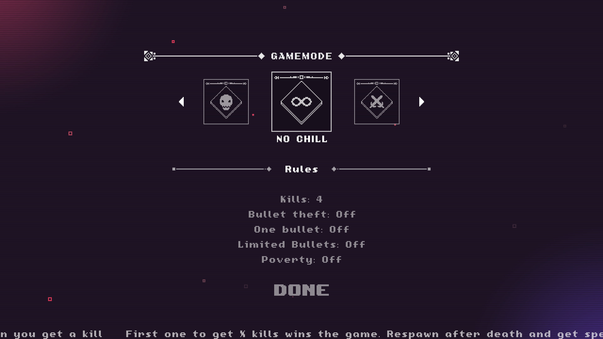 Velvet Guard is an 8-player party game with intense and hilarious versus matches. The core mechanics are simple and accessible; you have a fixed amount of projectiles that, after being fired, can be picked up by anyone. With different game modes and options, each gameplay is never the same. With a wide array of abilities and expressive depth, the game can be quite challenging and fun.